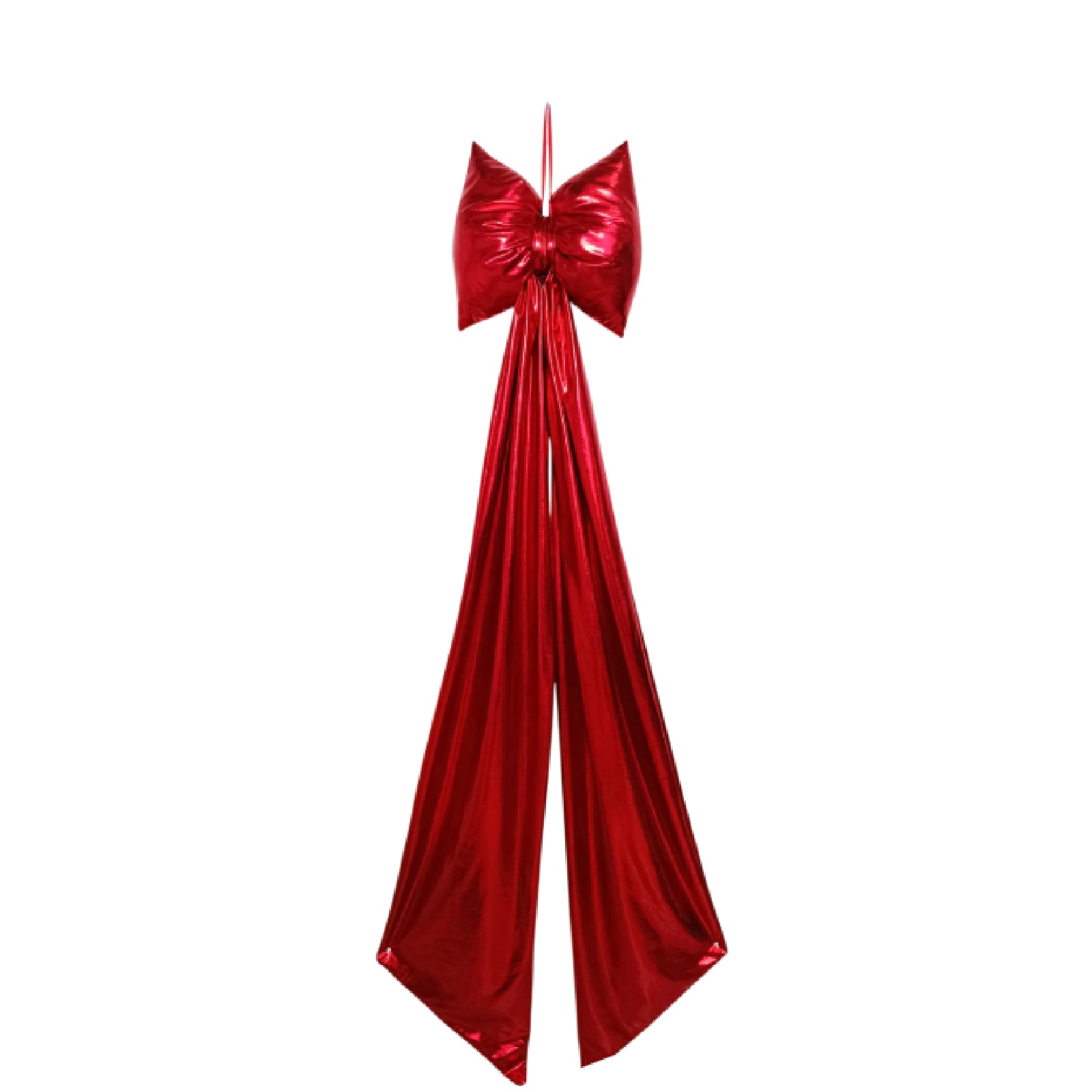 Il nastro, piegato e sagomato con precisione per ottenere un fiocco perfetto, presenta code lunghe e morbide che scendono con grazia lungo i rami, creando un senso di armonia e completezza nell’allestimento dell’albero.