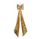 Questo fiocco natalizio laminato è una decorazione pensata per aggiungere un tocco di eleganza e luminosità all’albero di Natale o ad altre composizioni festive.