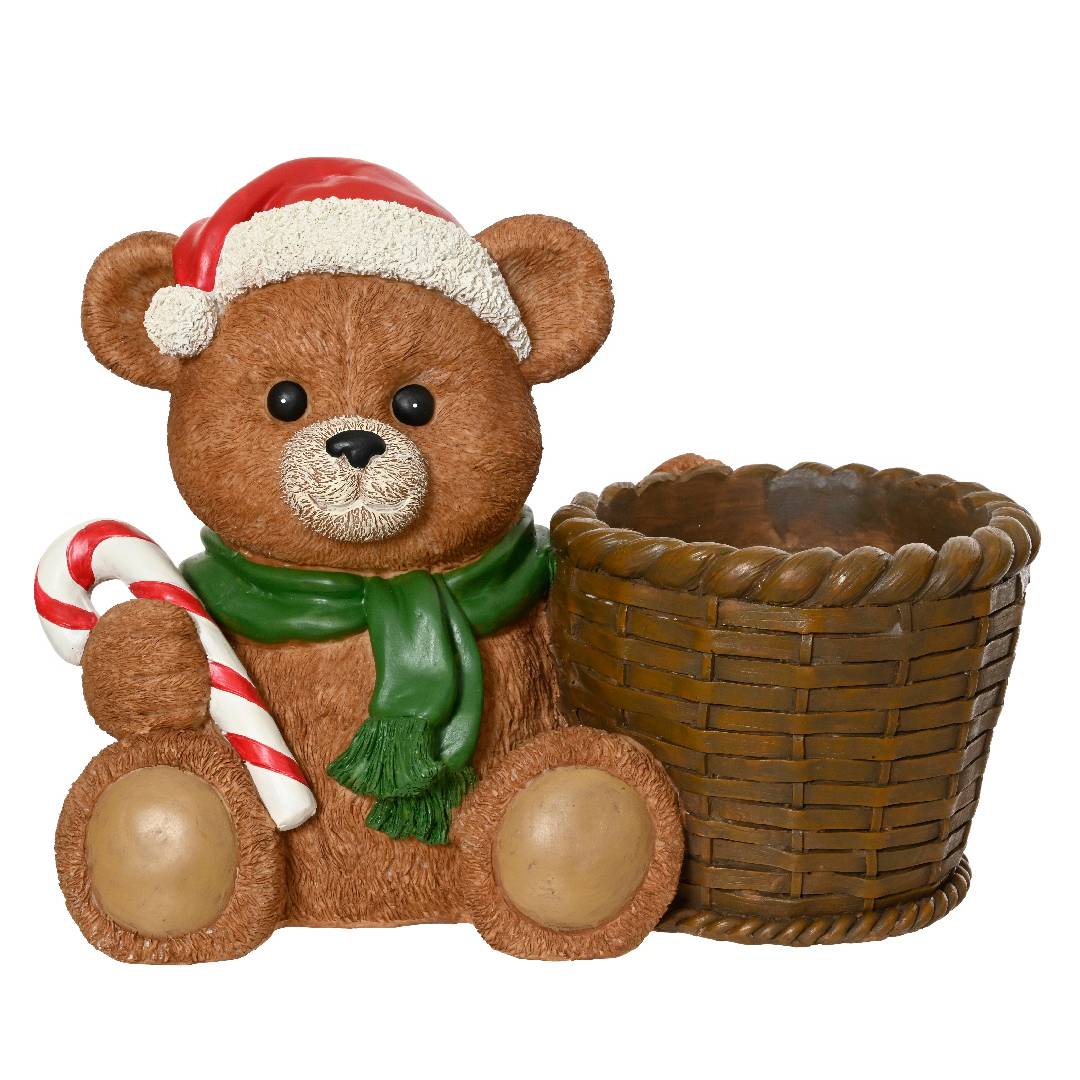 Orsetto con cesta base albero decorazione natalizia, da 18.5 x 33.5 x 25 cm