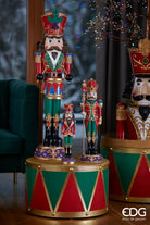 La base ha le sembianze di un soldatino, all'estremità ha un supporto in metallo, è studiata per conferire al vostro albero di Natale un aspetto più giocoso e simpatico e per rimpiazzare l'antiestetica base metallica e la base del tronco.