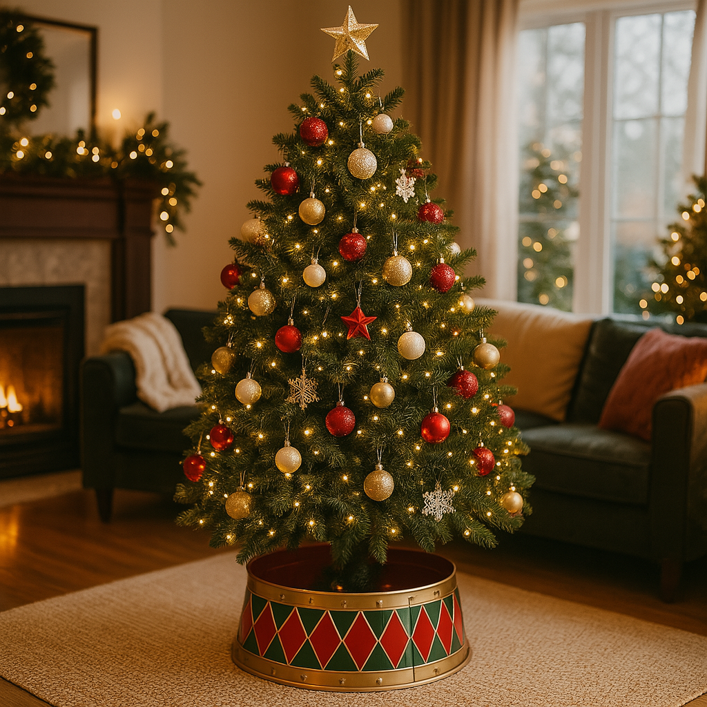 Base albero a forma di tamburello rosso per decorazioni natalizie da Ø40x46,8h