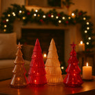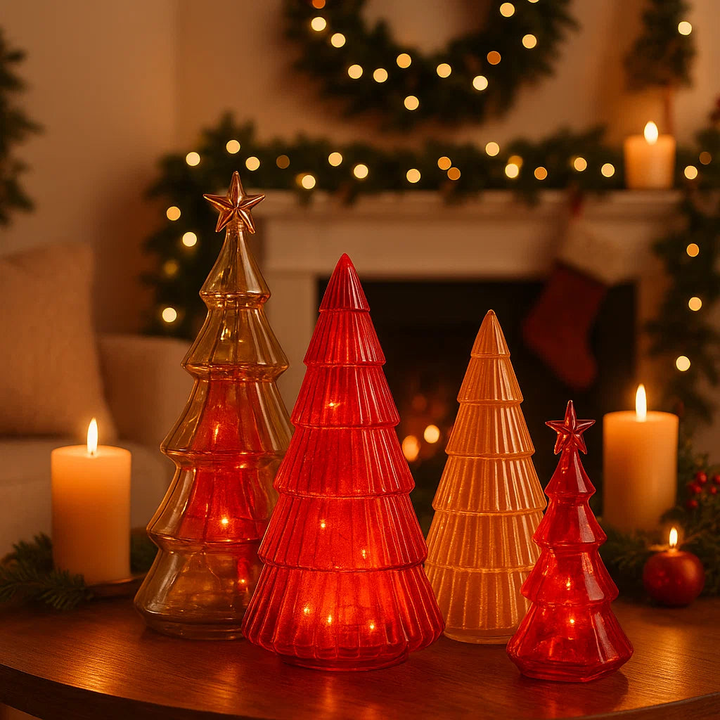 L'albero di Natale decorativo in vetro con luci per decorazioni natalizie è un elegante oggetto pensato per arricchire l'atmosfera delle festività con un tocco di raffinatezza e luminosità.