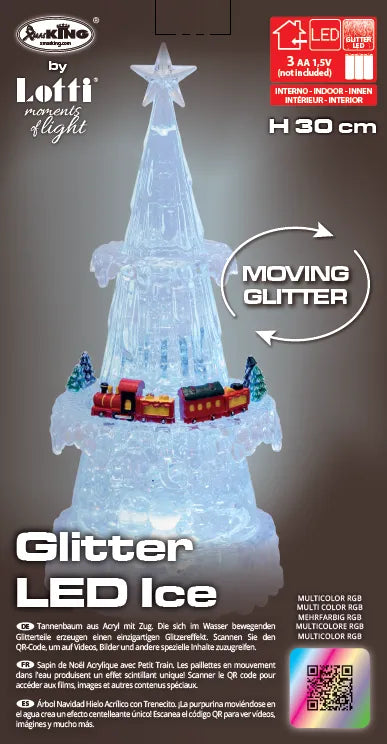 L'albero di Natale in acrilico con trenino glitter LED è una decorazione natalizia elegante e originale, perfetta per portare un tocco di magia e fascino nelle festività.