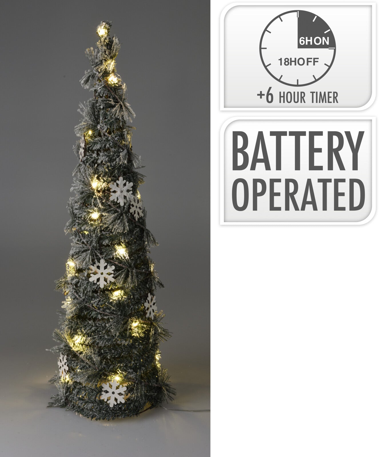 Cono pino innevato in ferro con luci Led per decorazioni natalizie