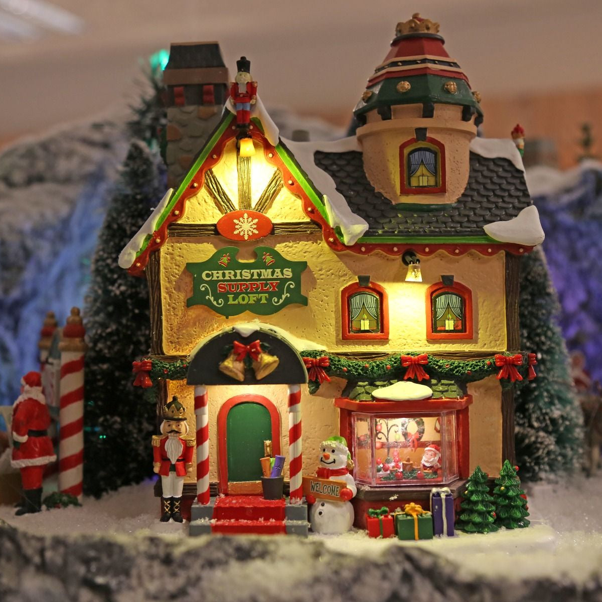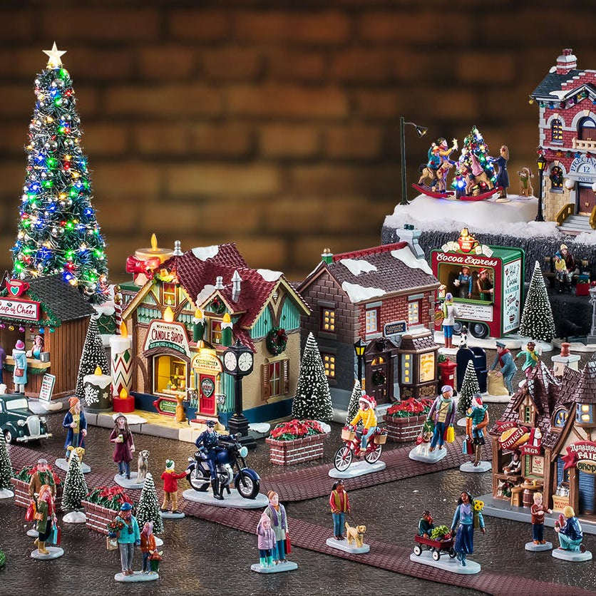 Gli alberi per villaggio di Natale Lemax sono mini alberi decorativi perfetti per arricchire scenari natalizi in miniatura. Realizzati con dettagli realistici, includono illuminazioni e decorazioni che si abbinano a case, figure e altri elementi del villaggio, creando un'atmosfera incantata e festosa.