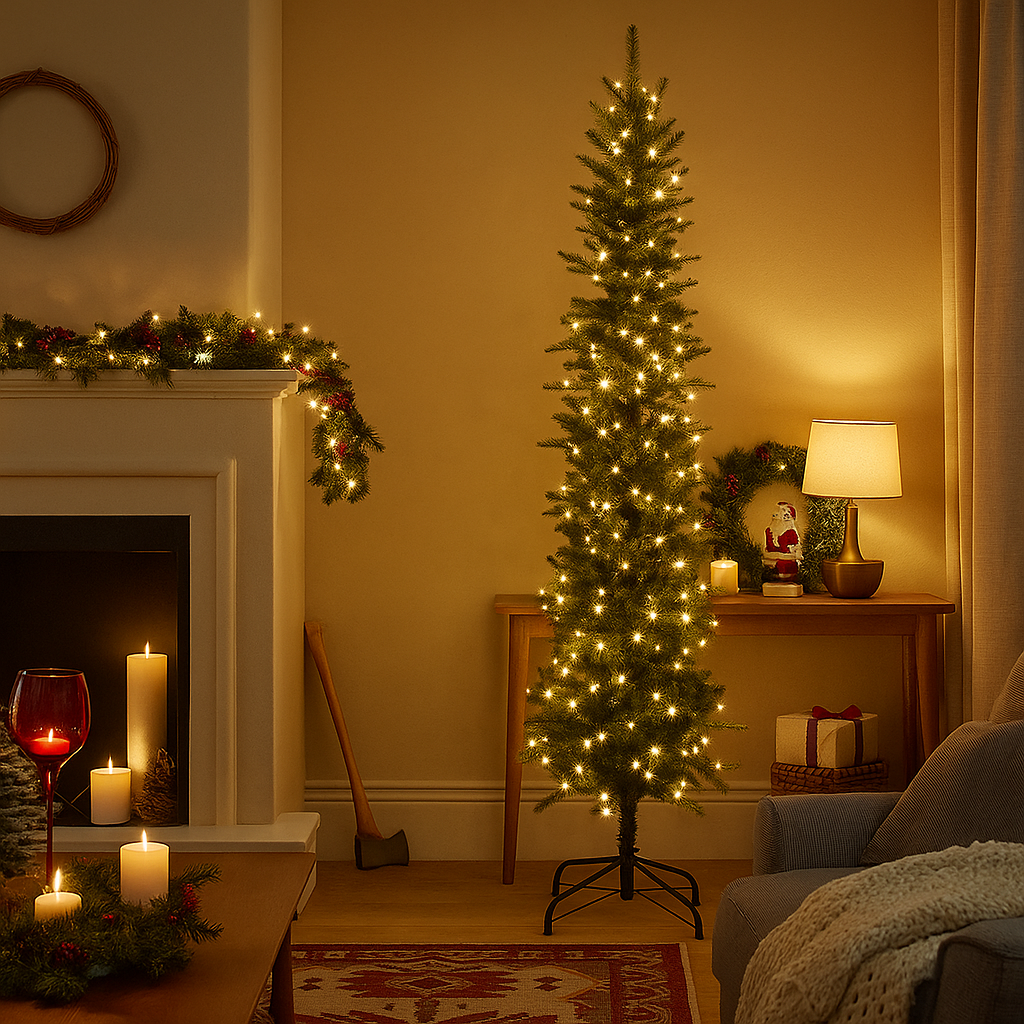 Lo Slim Fir è un albero di Natale dal design slanciato e compatto, pensato per chi desidera eleganza anche in spazi ridotti. Realizzato in PE effetto Real Touch ad altissima definizione e PVC per un volume armonioso, garantisce un effetto visivo estremamente realistico. I LED già integrati regalano una luce calda e avvolgente, pronta a illuminare l’atmosfera natalizia fin dal primo giorno.