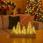 Paesaggio natalizio con Alberi di Natale illuminati con luce calda su base tronco da 8 cm