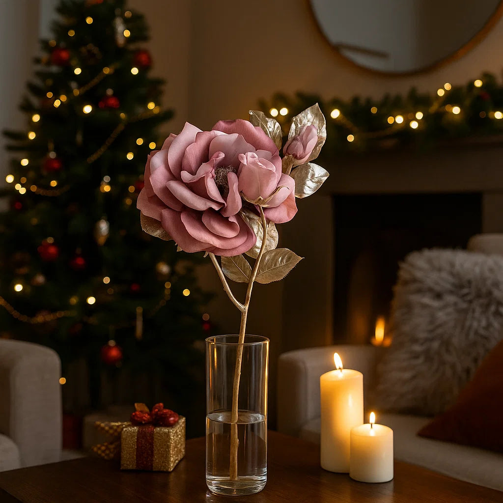Rosa Inglese Mauve con glitter in materiale sintetico decorazione floreale da 48 cm
