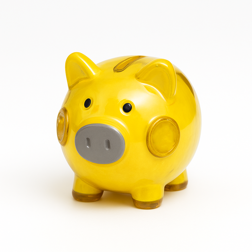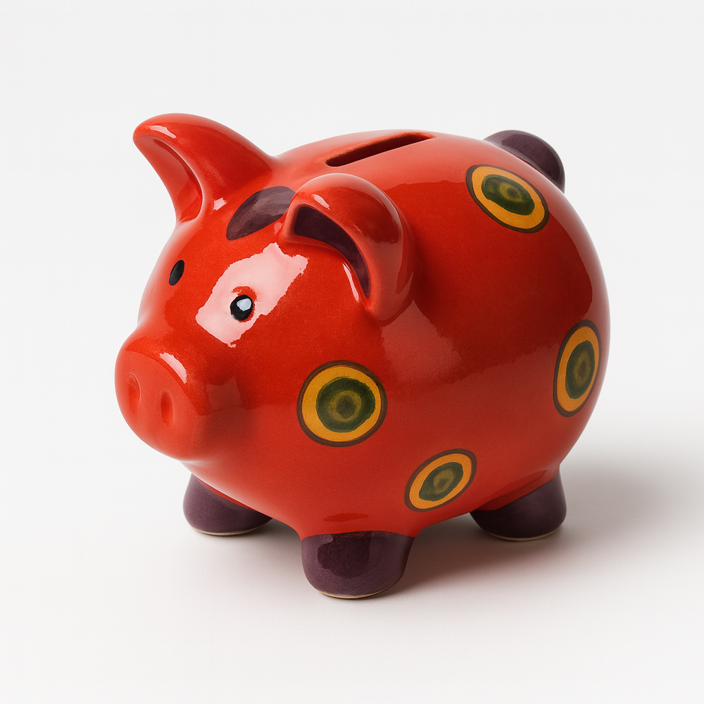Salvadanaio "Maialino" con decorazioni floreali, in terracotta