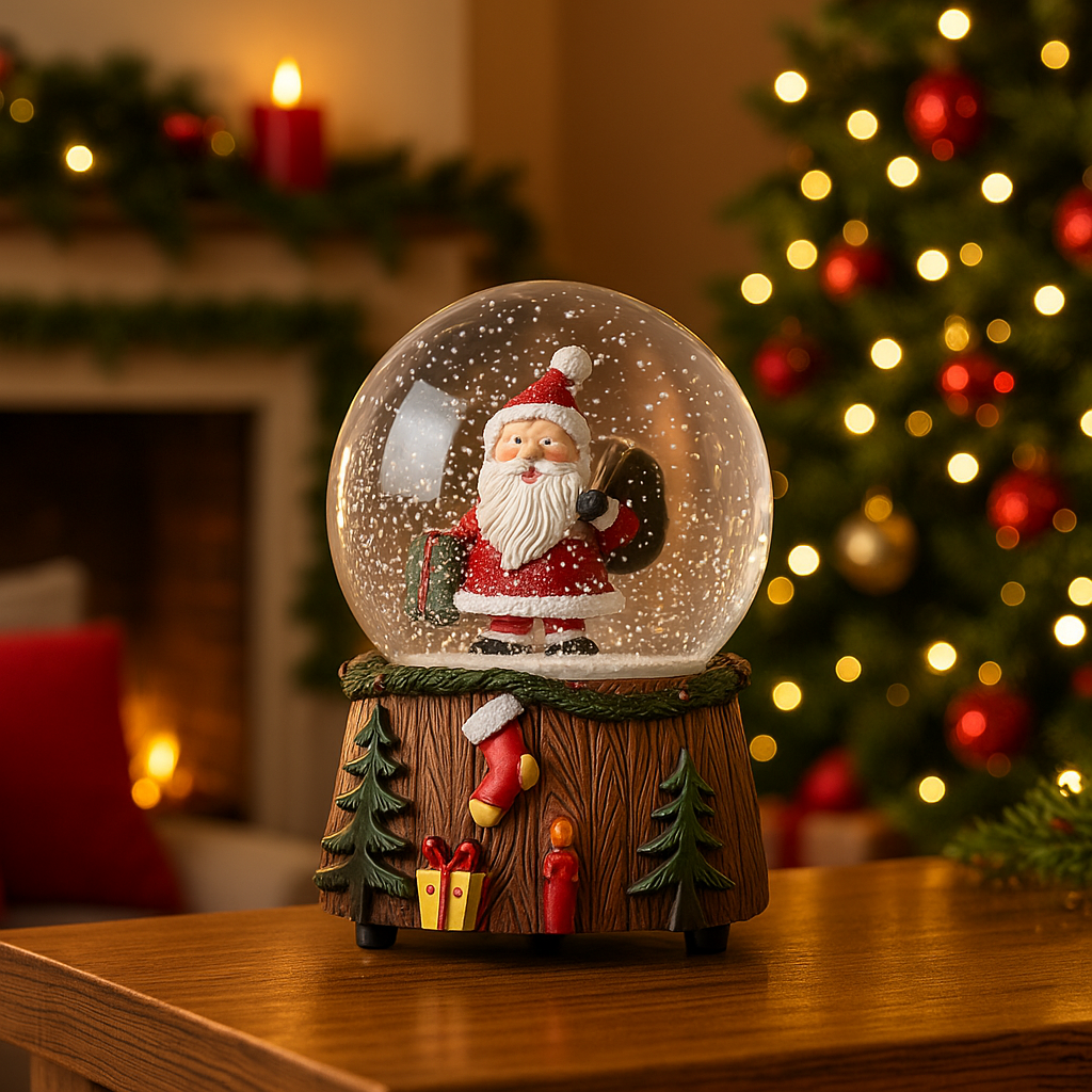 Sfera natalizia con carosello con musica, luci e movimento a batteria