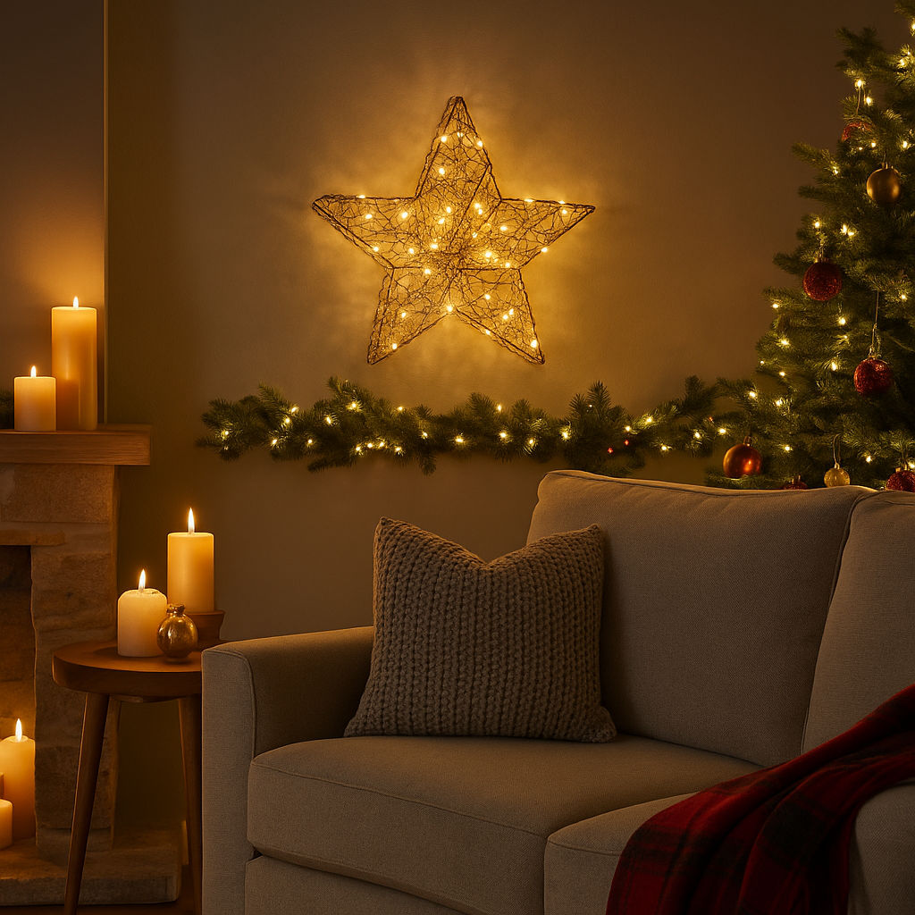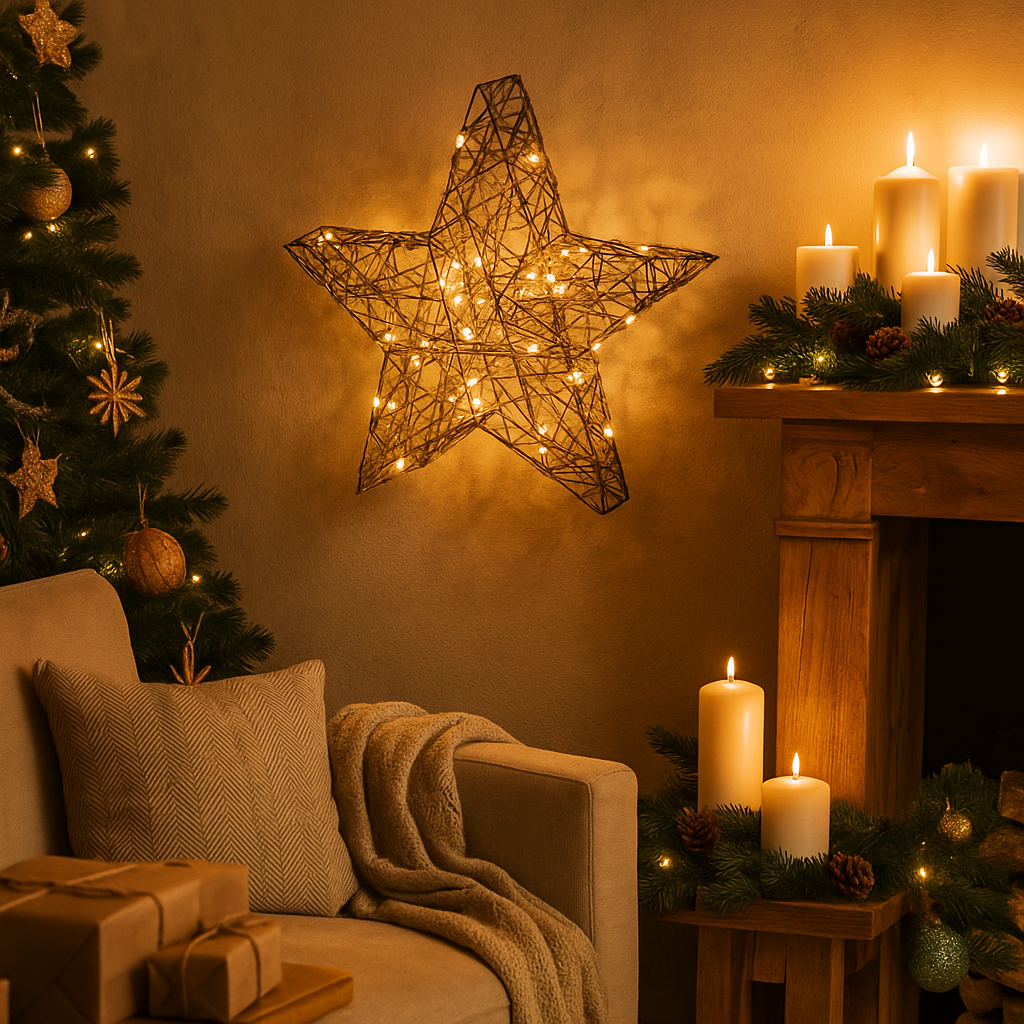 Stella decorativa color oro con luce Led calda per decorazioni natalizie