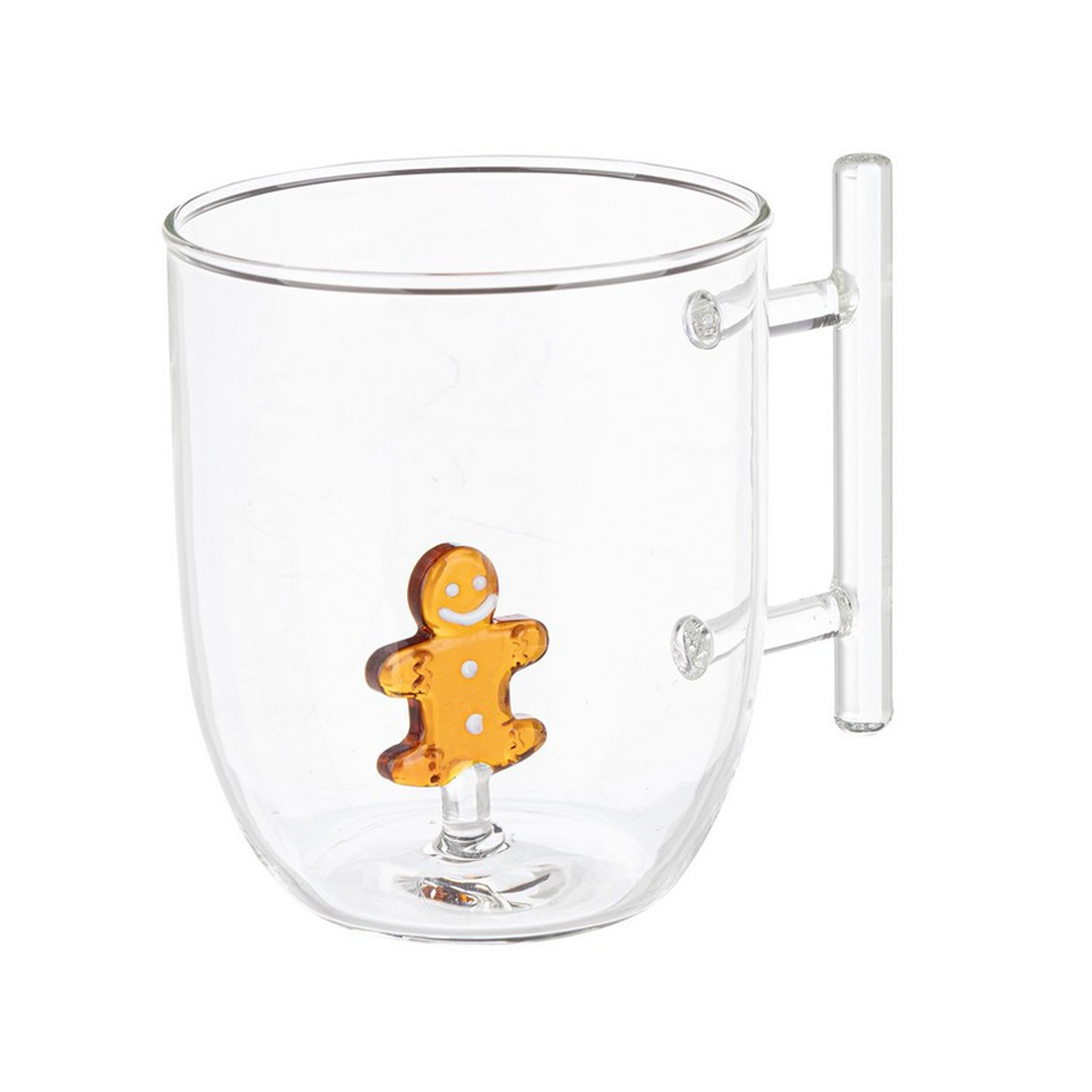 Tazza "Glamorize Omino" in vetro, con decorazione natalizia, da 10 cm
