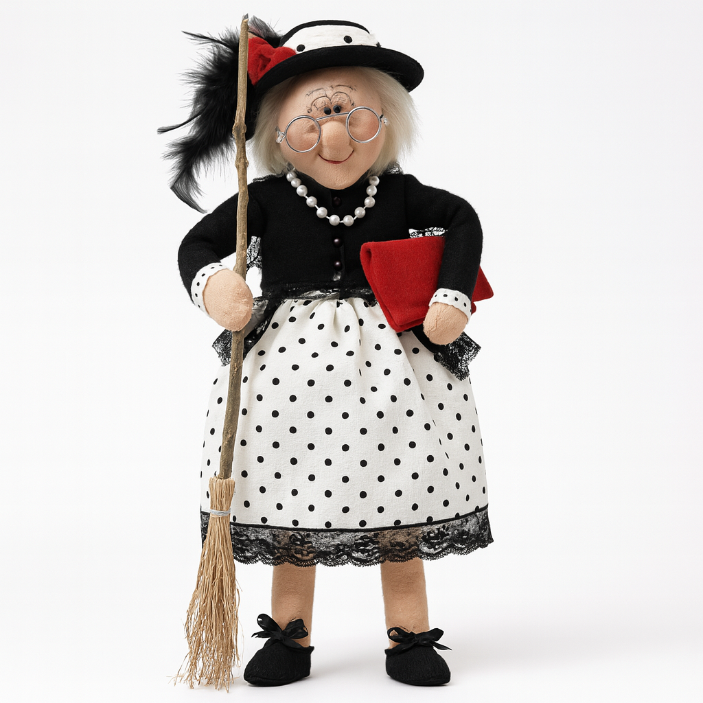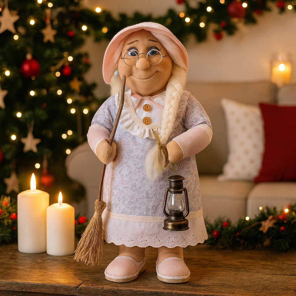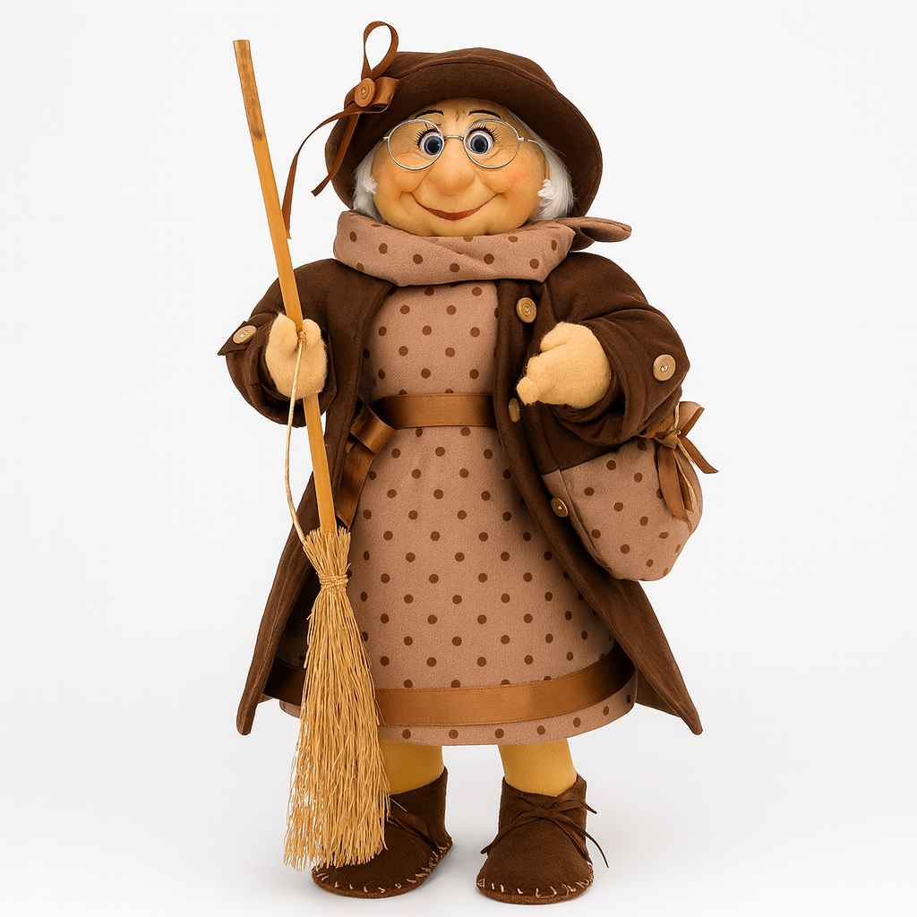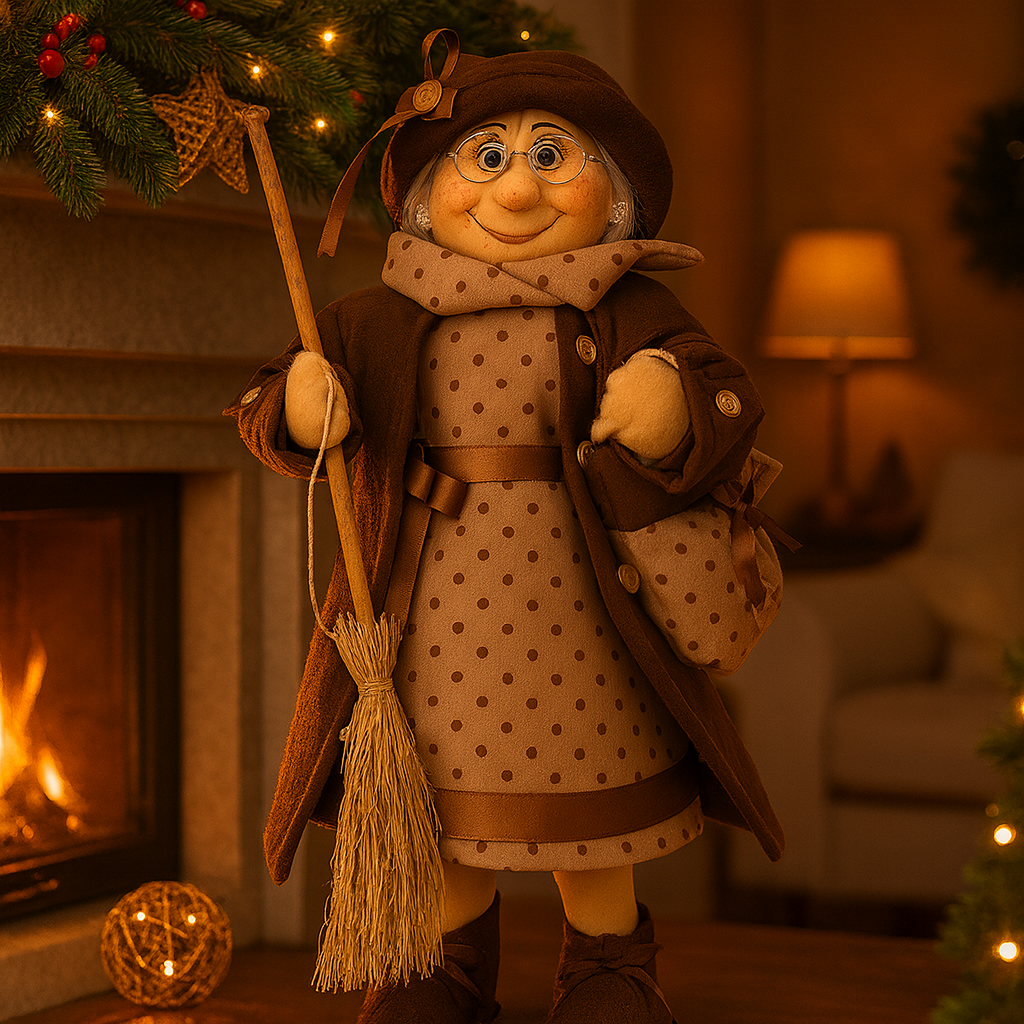 Befana "Isabella" da collezione in tessuto artigianale decorazione per epifania