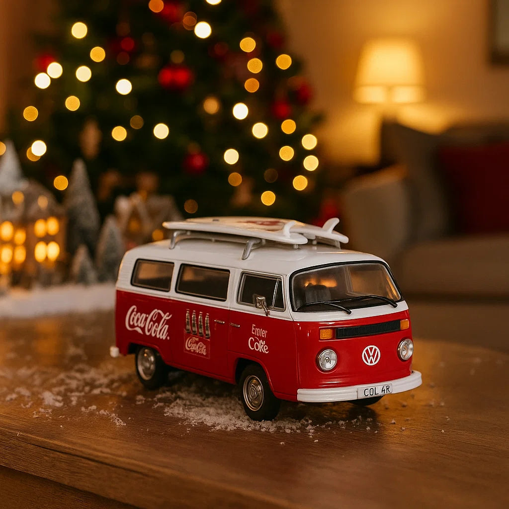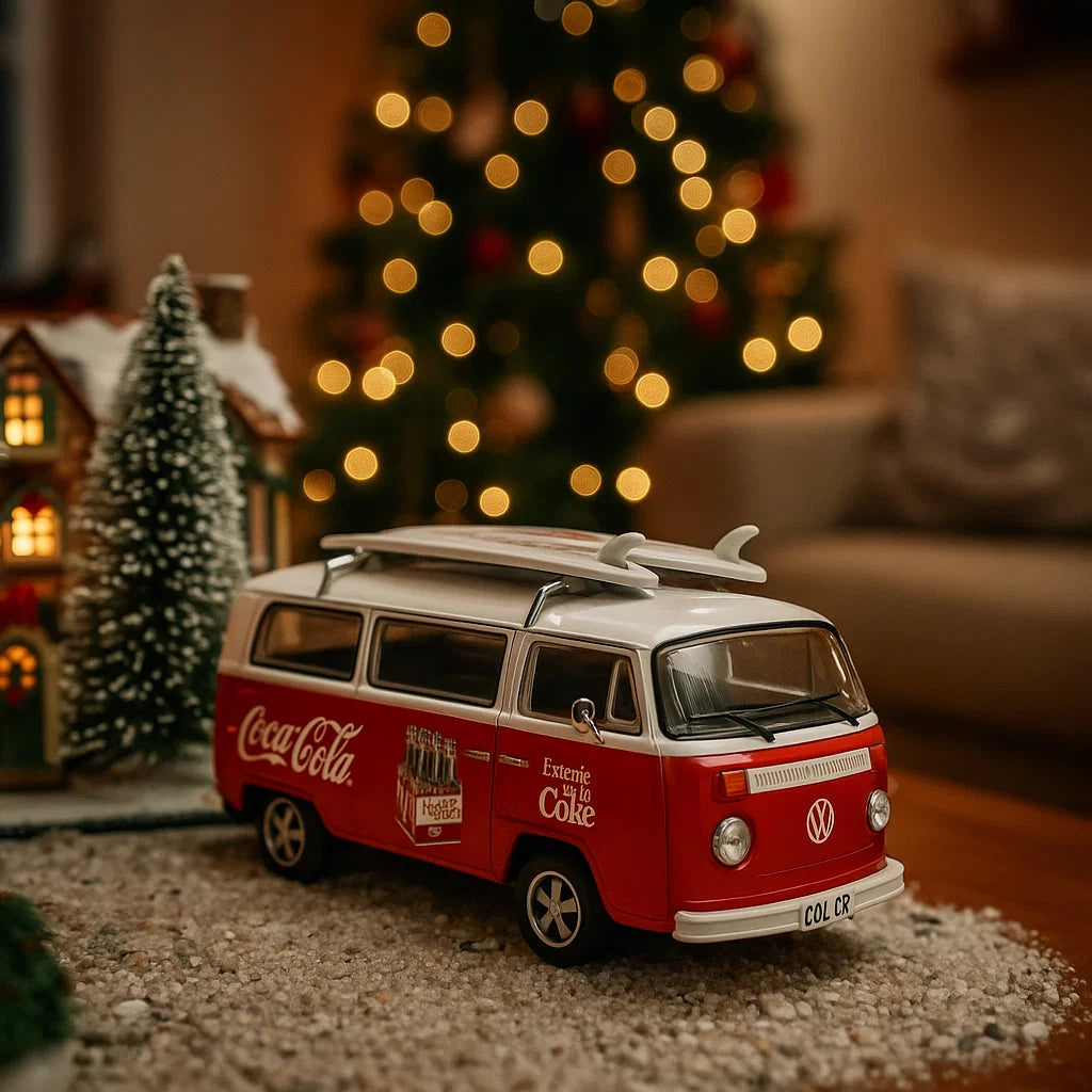 Camper "Coca-Cola" con tavola da surf, per villaggio di Natale, collezionismo 10,6 x 4 x 5,2 cm