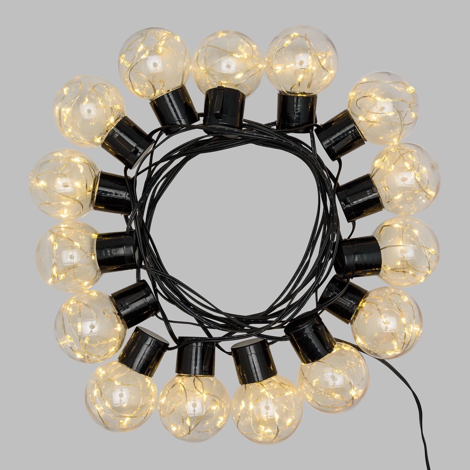 Catena solare 15 lampadine Ø 50 mm luce calda da esterno 6 mt