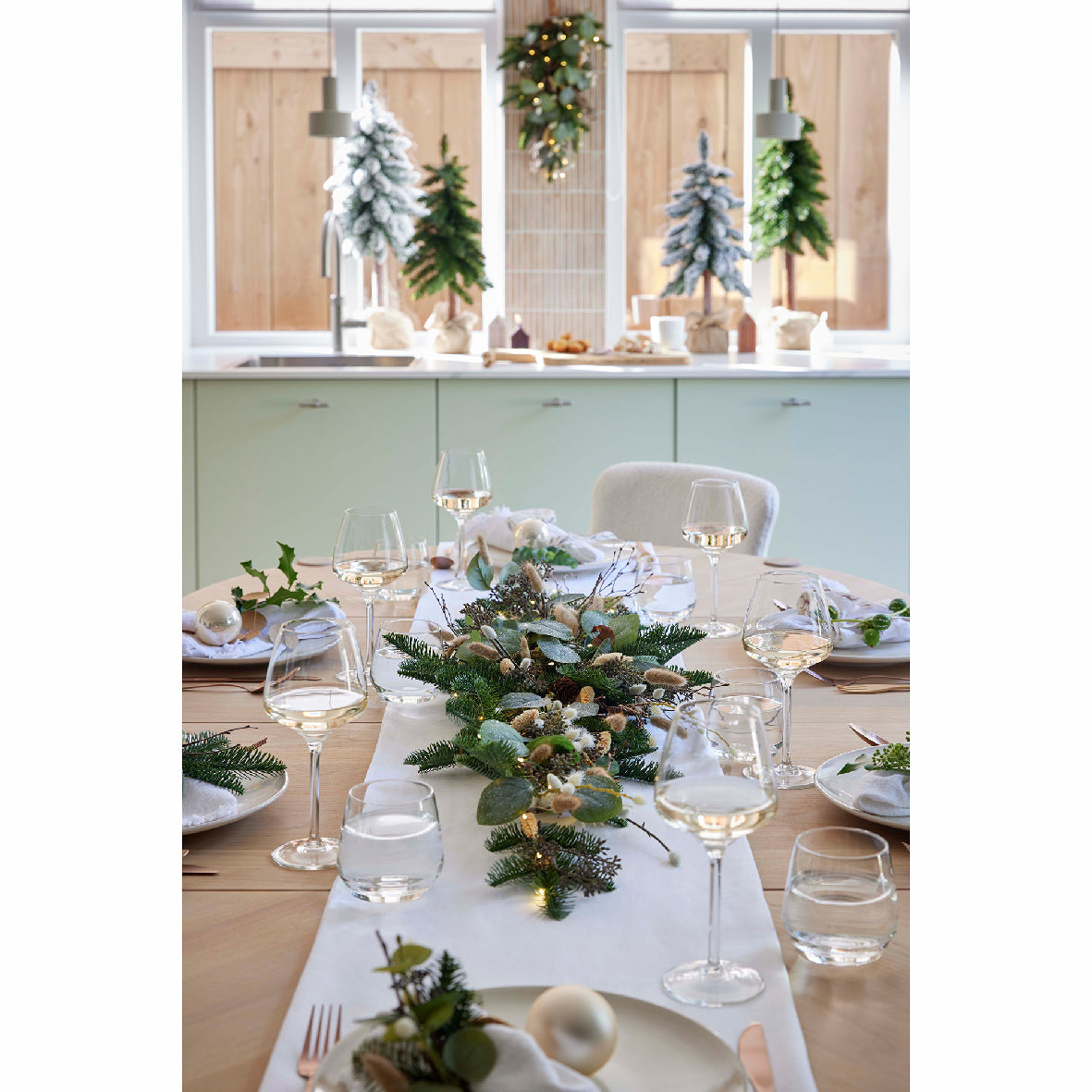 Centro tavola porta candele color verde con pigne per decorazioni natalizie, da 75 cm