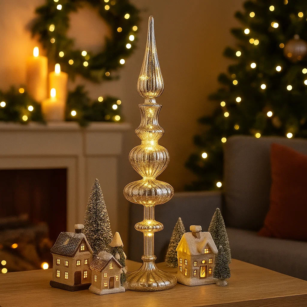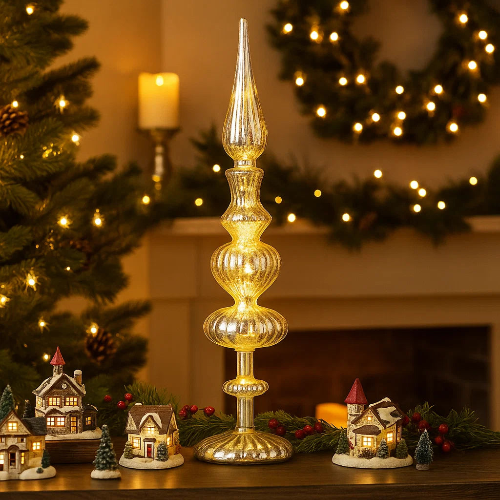 Decorazione cono con led color oro in vetro e plastica H44,50 cm per decorazioni natalizie