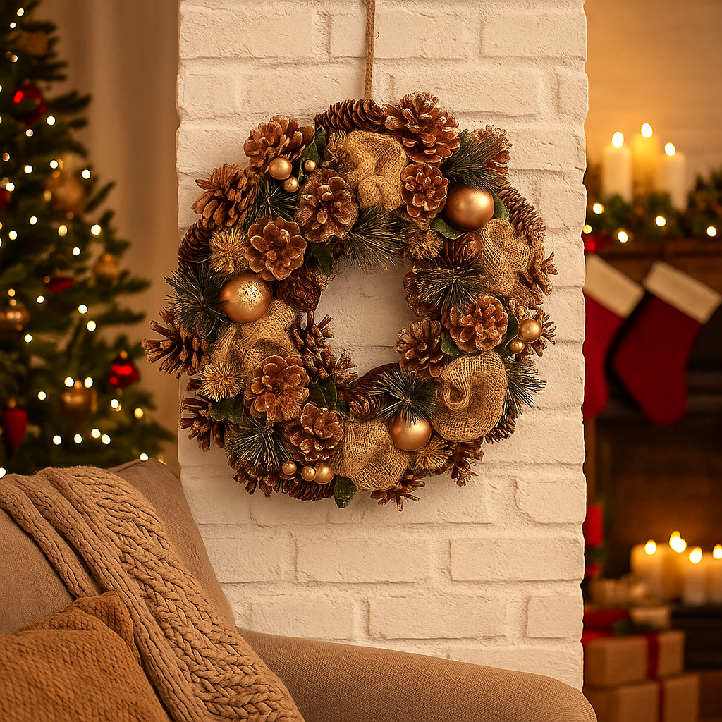 Ghirlanda corona natalizia, decorazione da interno ed esterno per dietro porta