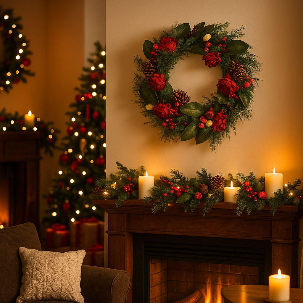Ghirlanda natalizia colore champagne, decorazione da interno ed esterno per dietro porta