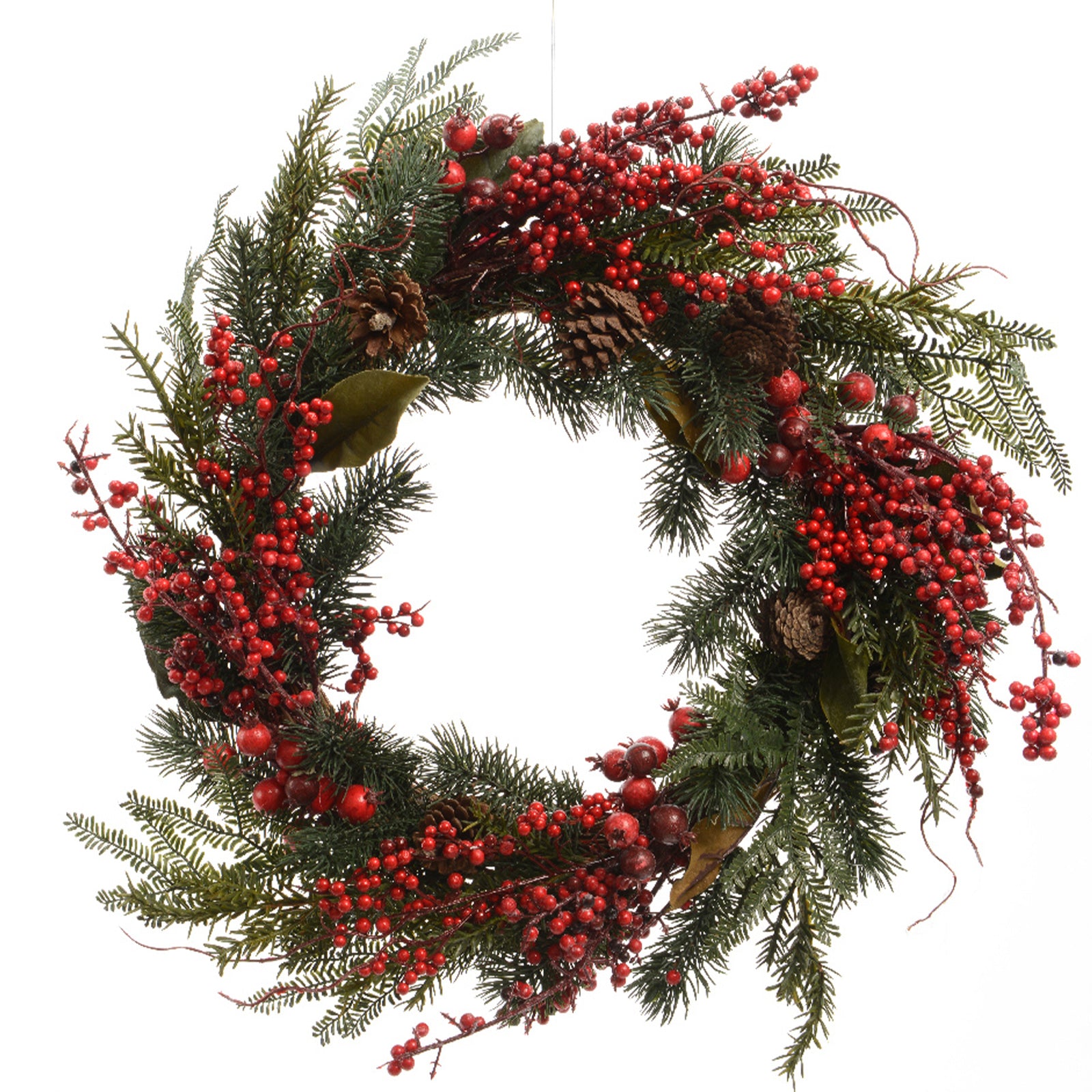 Ghirlanda tonda natalizia con bacche, decorazione per dietro porta da 50 cm