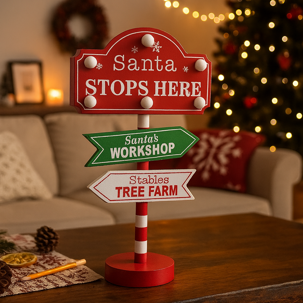 Insegna natalizia in legno con luce e indicazioni, decorazione h 28 cm