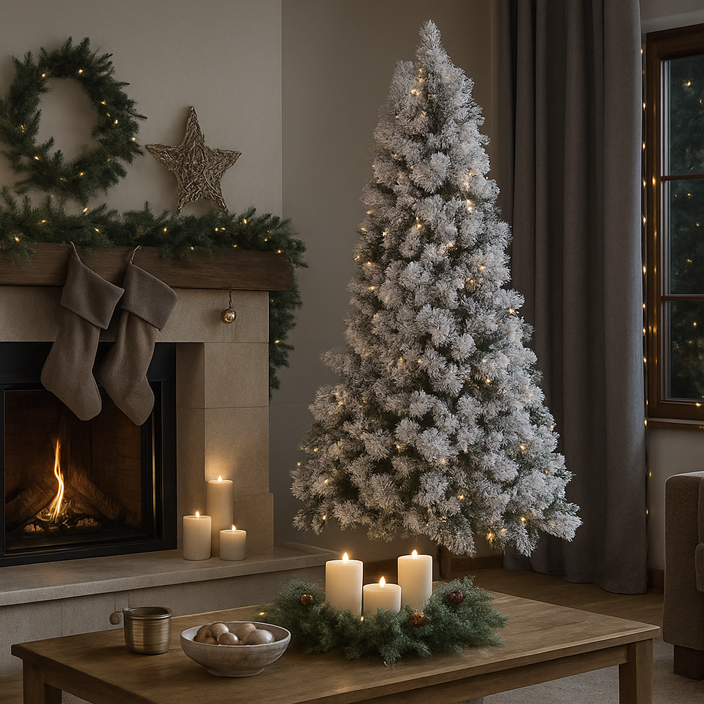 Albero di Natale Innevato "Bormio" in PE Effetto Real Touch + Flock di Altissima qualità