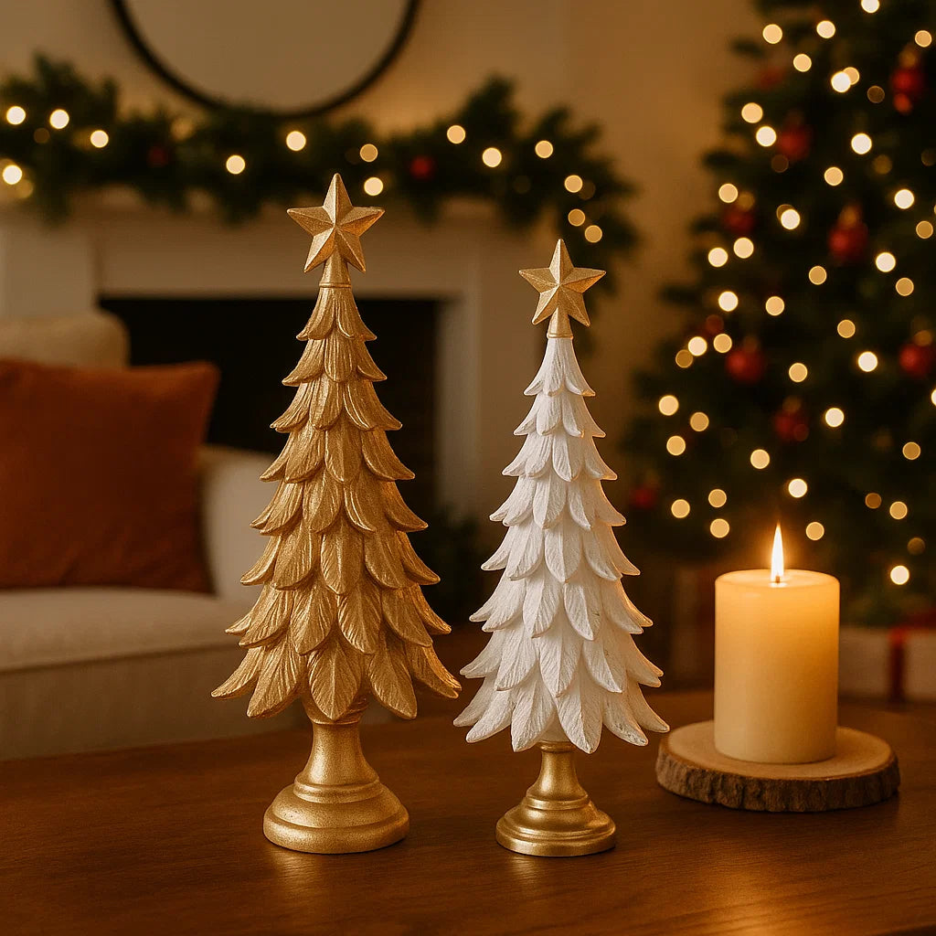 Albero di Natale Evergreen, accessori per villaggio di Natale, set di 2 pezzi