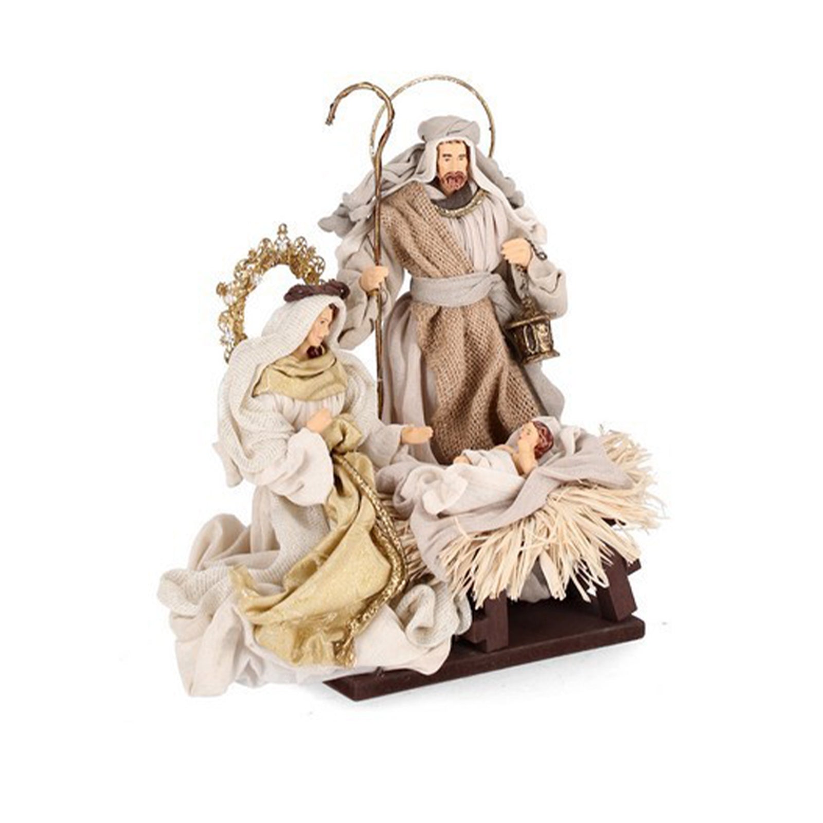 Natività con vestiti in tessuto Beige e Bianco statue per presepe h 73 cm