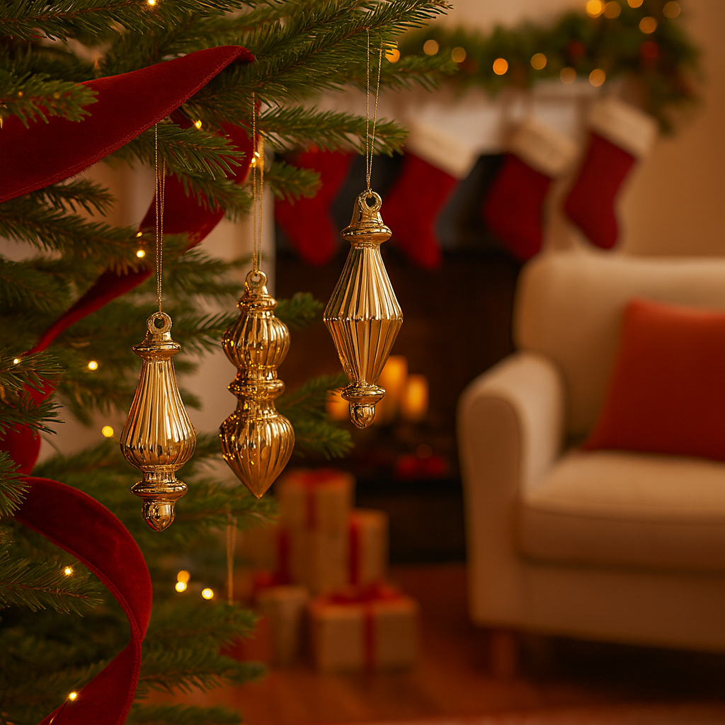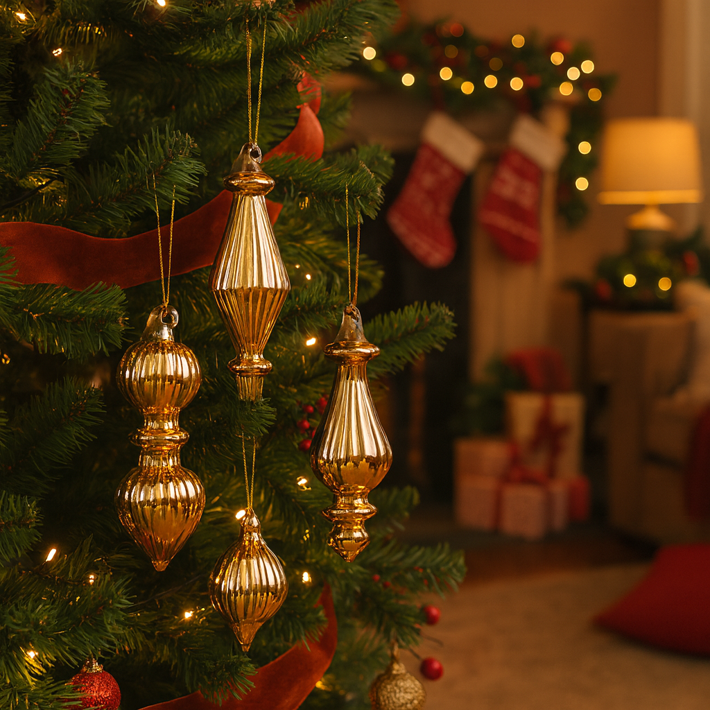 Palline a forma di ghianda in vetro per albero oro, confezione da 12 pezzi