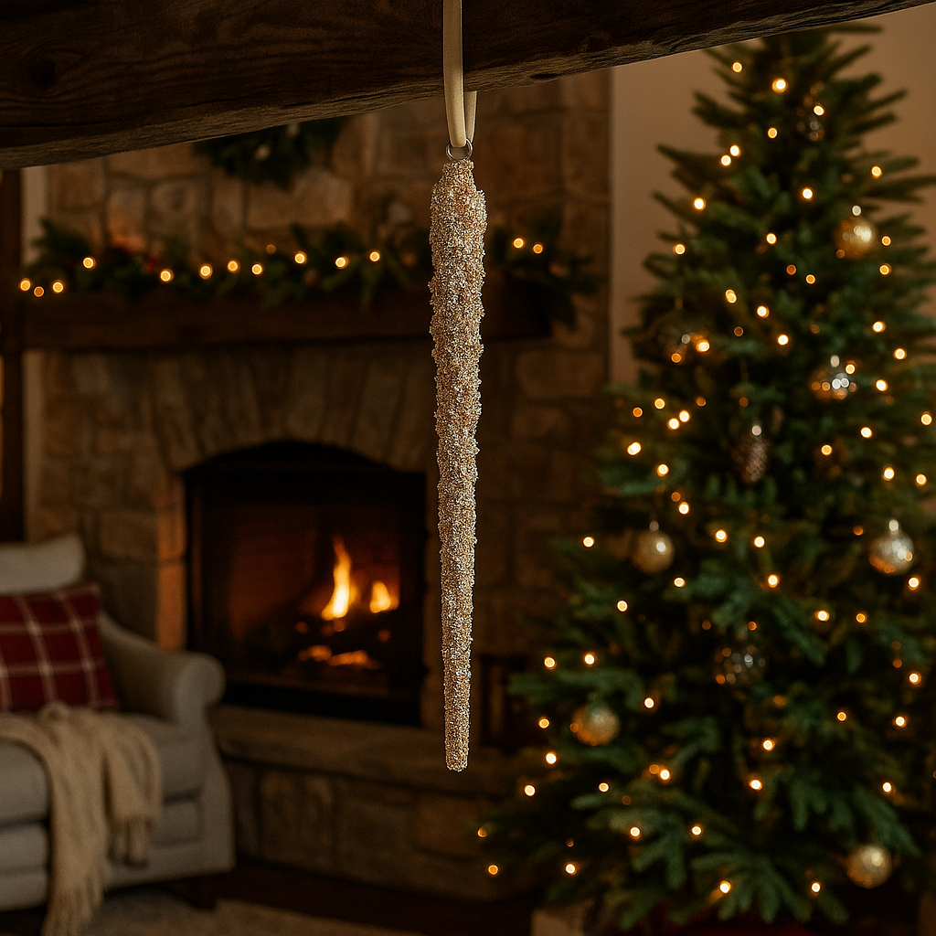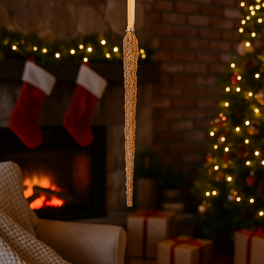 Pendaglio brillantinato color oro per decorazioni natalizie lungo 28 cm