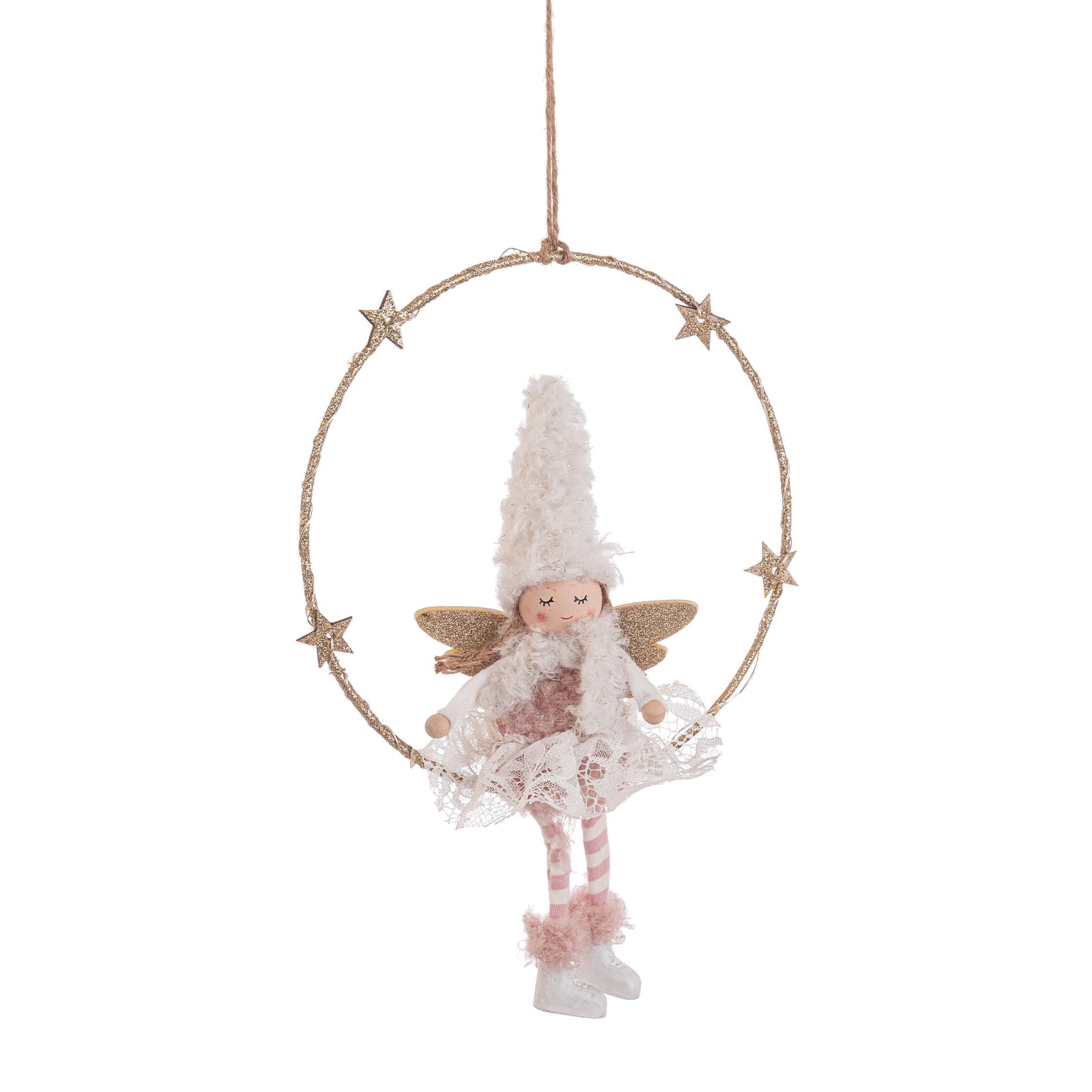 Pendaglio bambolina in pezza h 16 cm, pallina per Albero di Natale addobbi natalizi