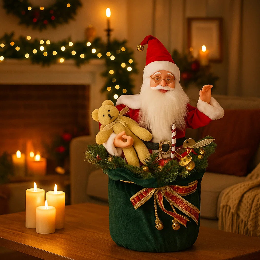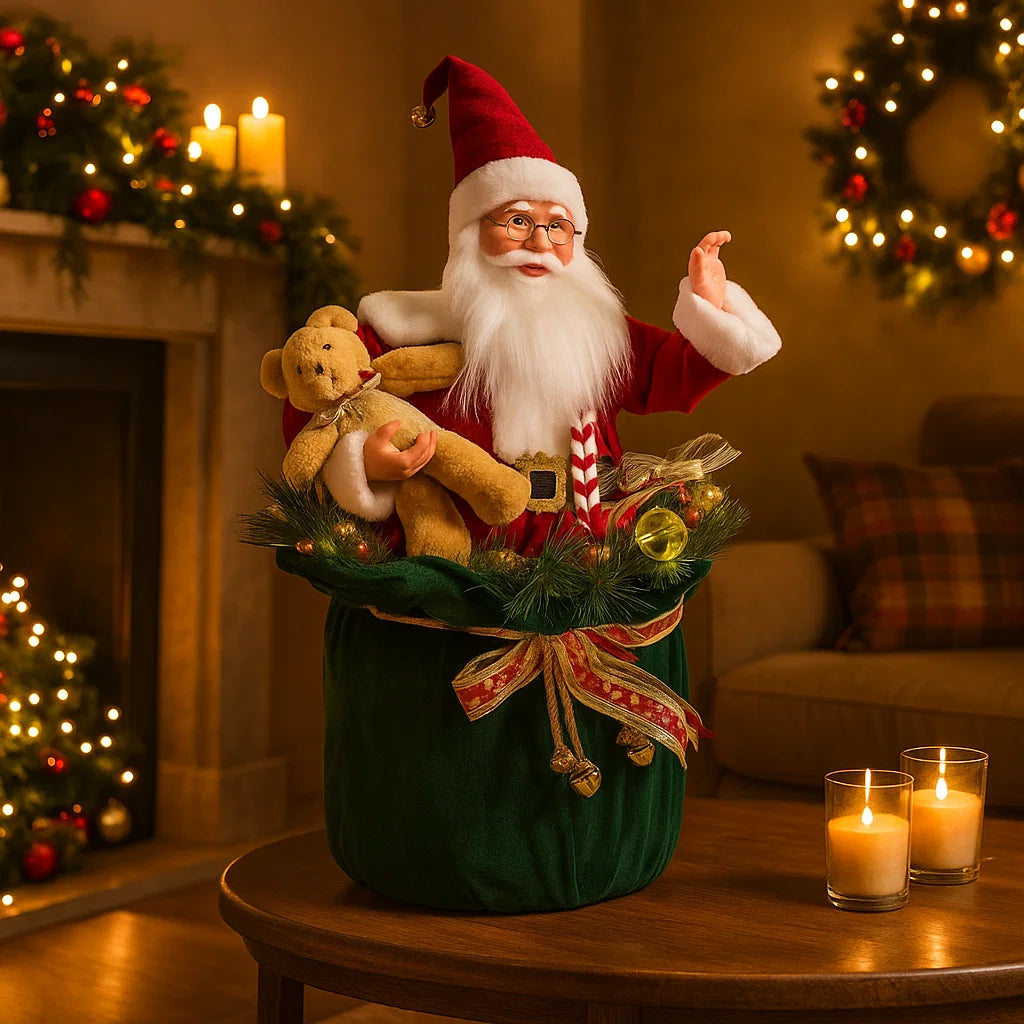 Pupazzo "Babbo Natale seduto" carillon in movimento con paillettes Rosse h 50 cm