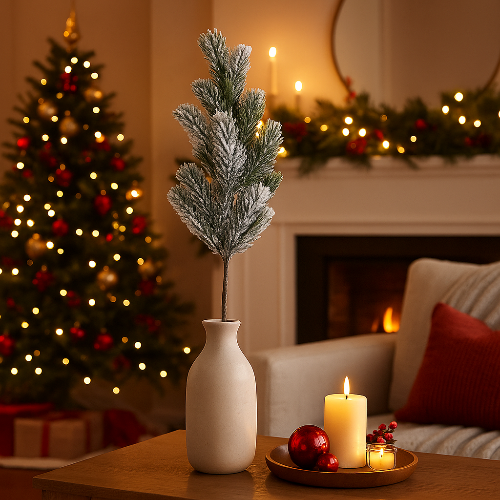 Ramo decorativo natalizio "Pino innevato" da 60 cm