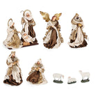Natività con 3 Re magi, angelo e pecorelle, con vestiti in tessuto color bronzo statue per presepe