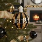 Pallina in vetro "Believe" colore nero e oro con angelo per albero di Natale