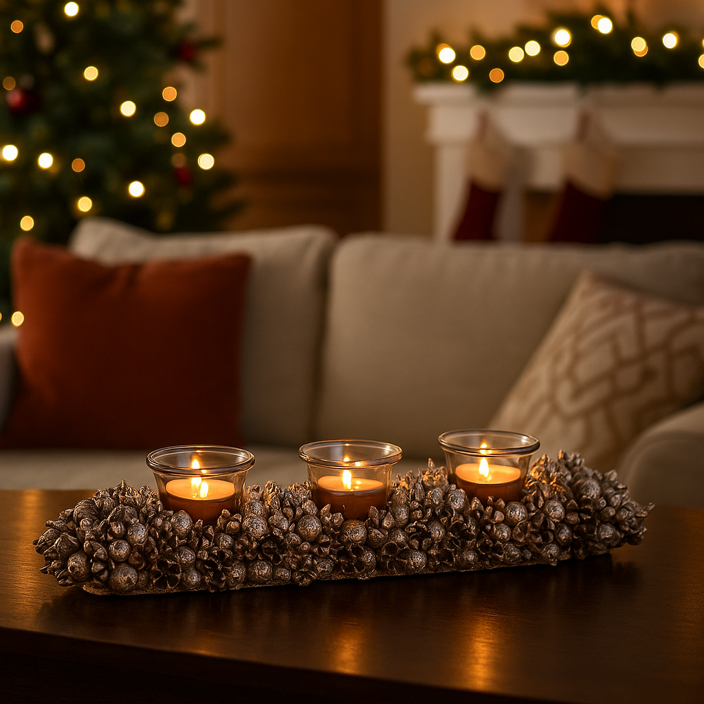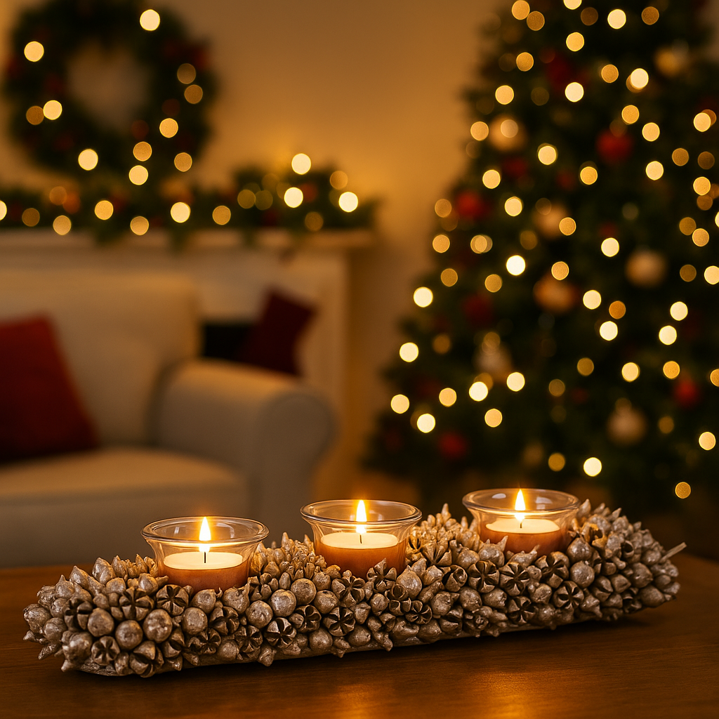 Dotato di spazio portacandela integrato, che permette di inserire tealight o piccole candele cilindriche, creando un effetto luminoso delicato e suggestivo