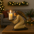 Questo elegante porta candela raffigurante un angelo inginocchiato è una decorazione perfetta per arricchire la tua casa con un tocco di spiritualità e raffinatezza durante il periodo natalizio, o in qualsiasi momento dell’anno.