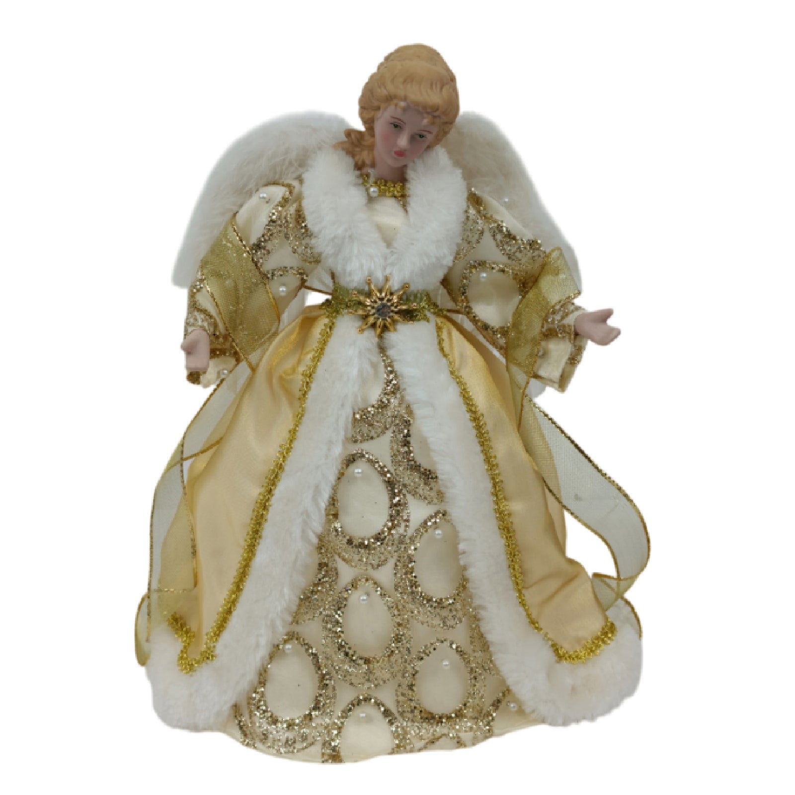 Puntale per albero di natale angelo con abito in oro e bianco, h 31 cm