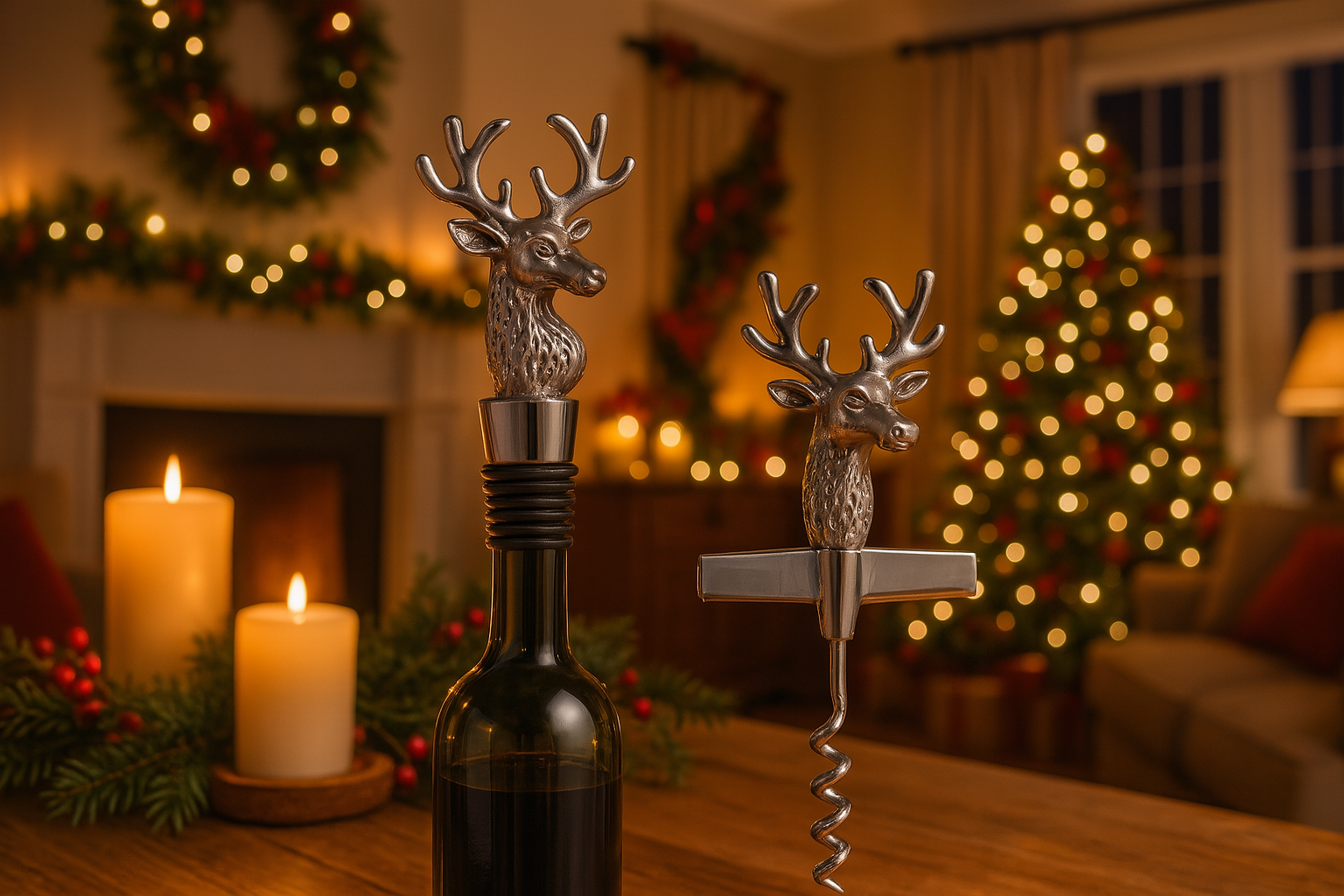Set tappo e cavatappi in acciaio per decorazioni natalizie