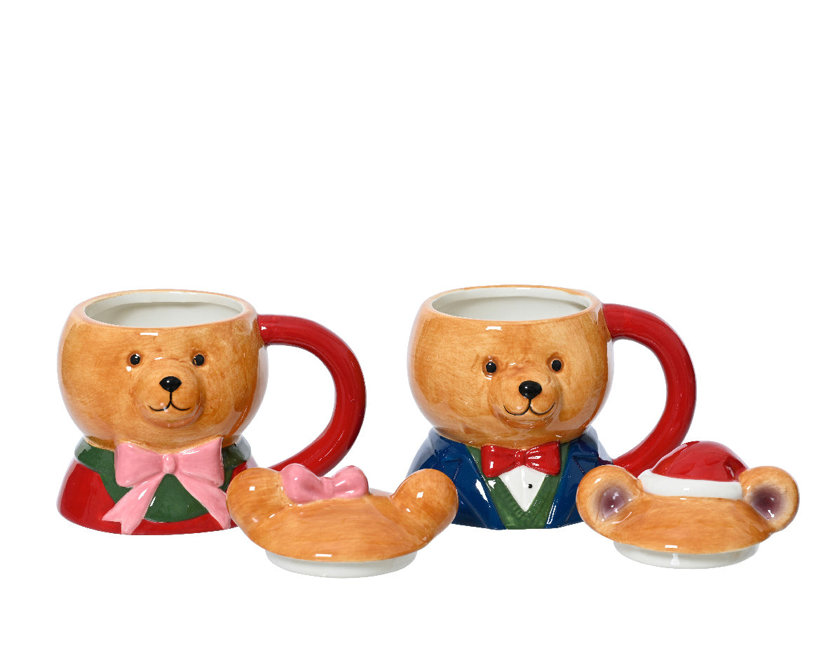 Tazza a forma di orso in ceramica con manico decorazione natalizia, da 11 cm