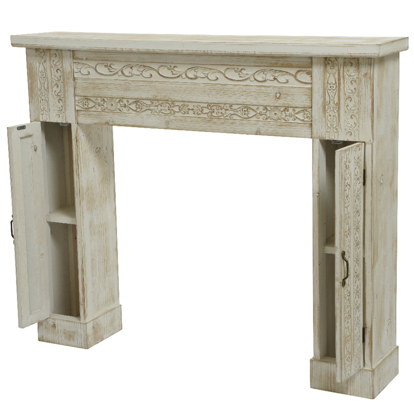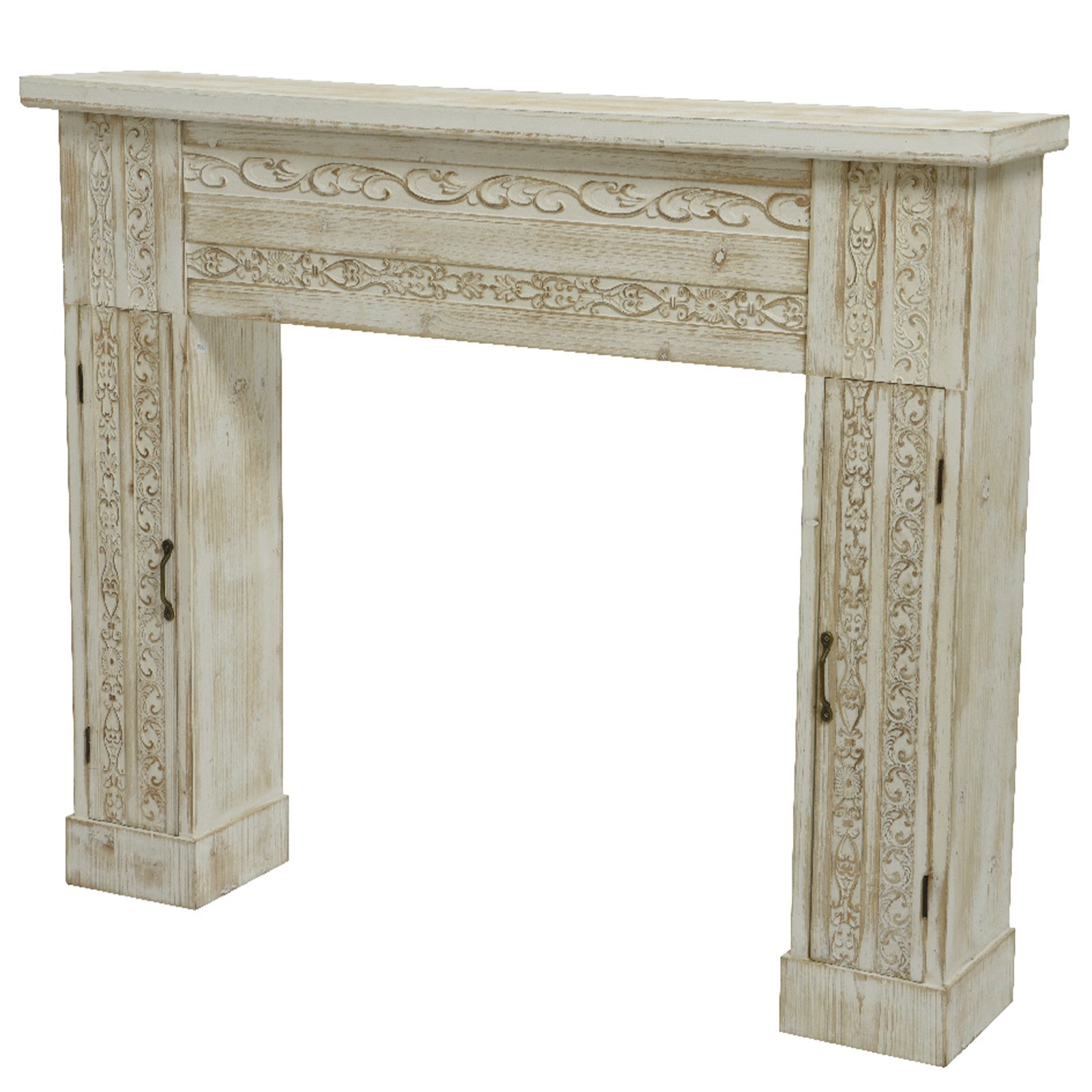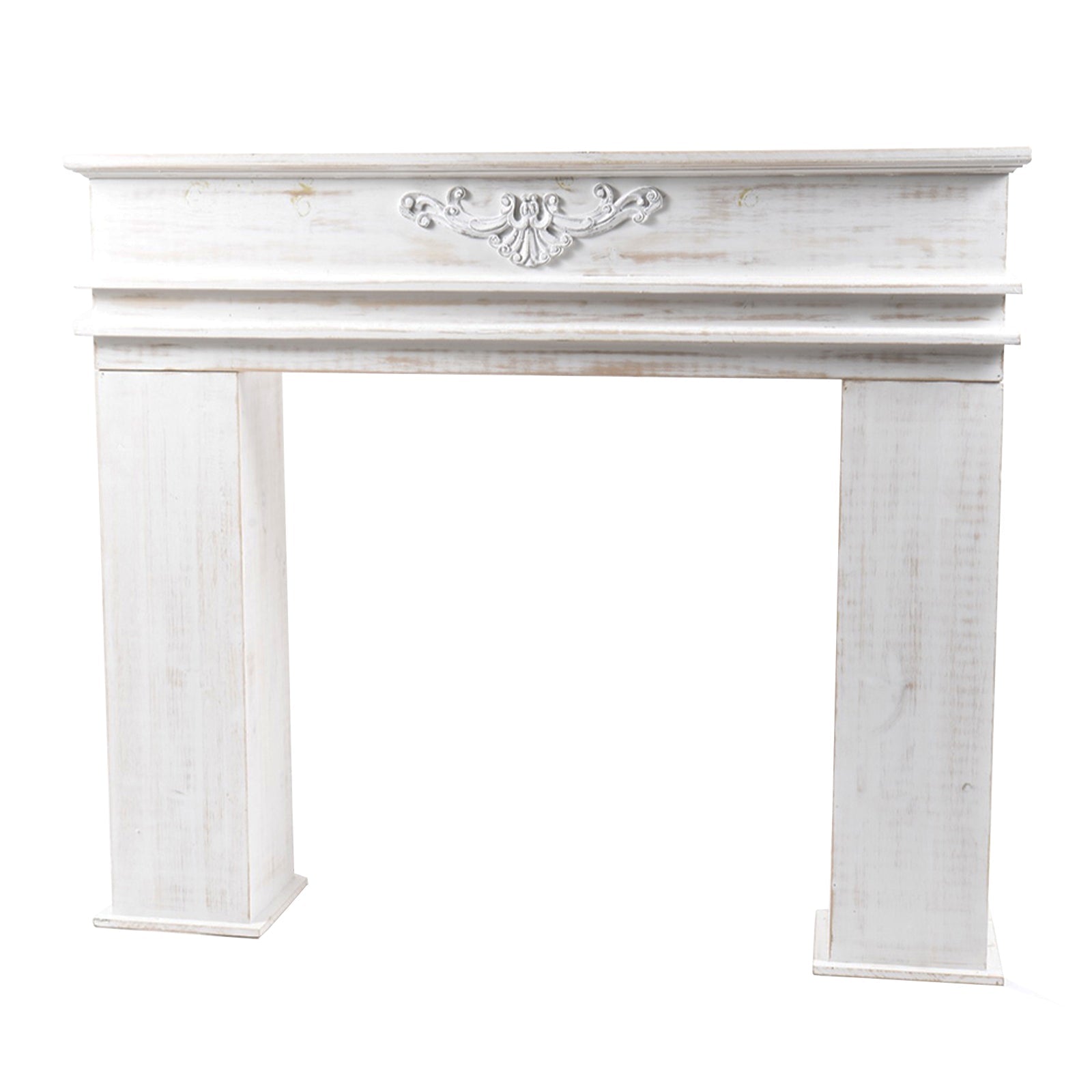 Cornice per camino in legno bianco, decorazione Shabby h 85 cm