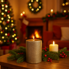 Candela cilindrica decorata con glitter Oro e perline bianche in paraffina decorazione ambienti
