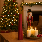 Candela Natalizia Cono con Righe Rosso decorazione per tavola e soggiorno h 25 cm