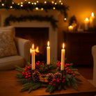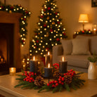 Il candelabro natalizio con pigne e bacche è una raffinata decorazione festiva progettata per aggiungere calore e stile agli ambienti durante le festività.