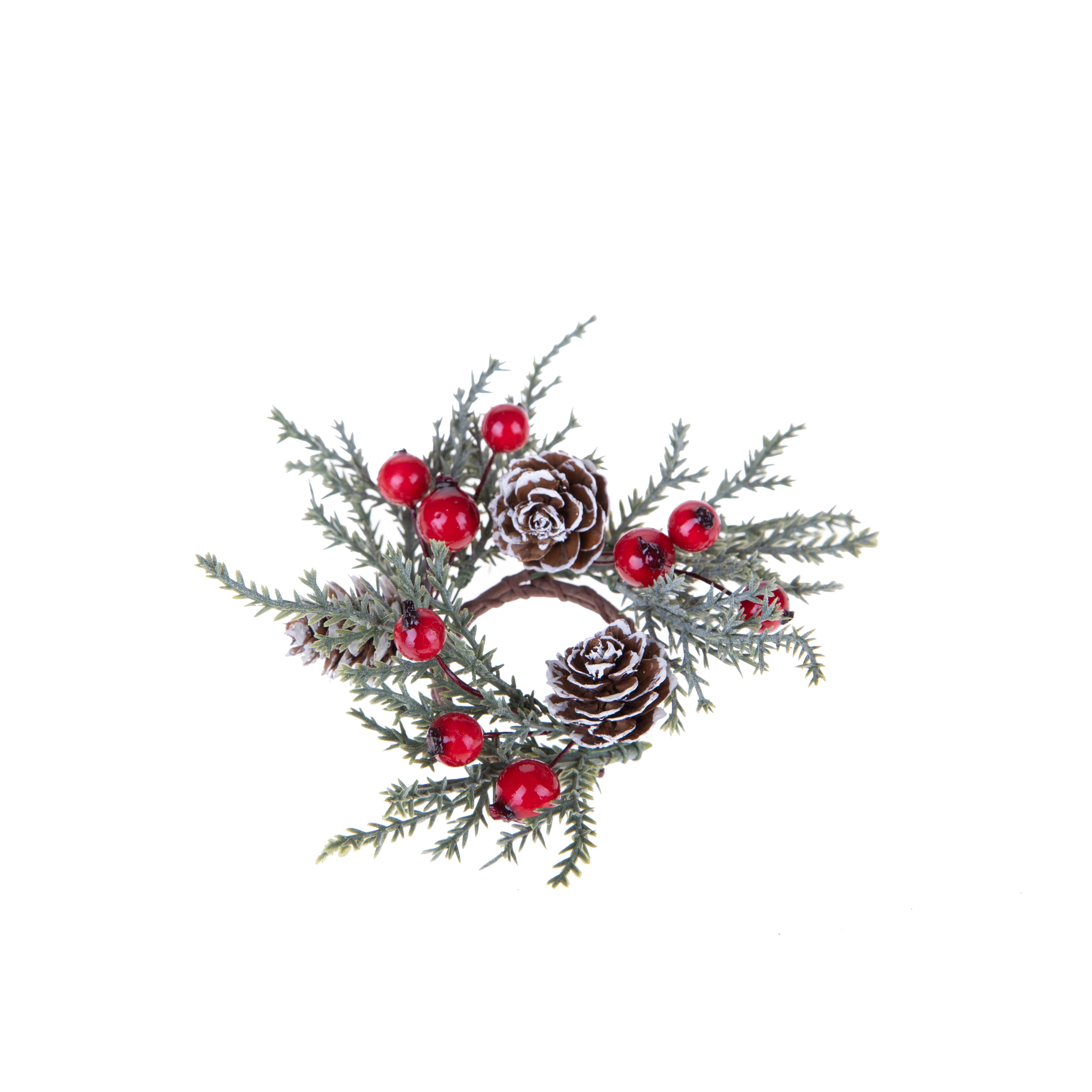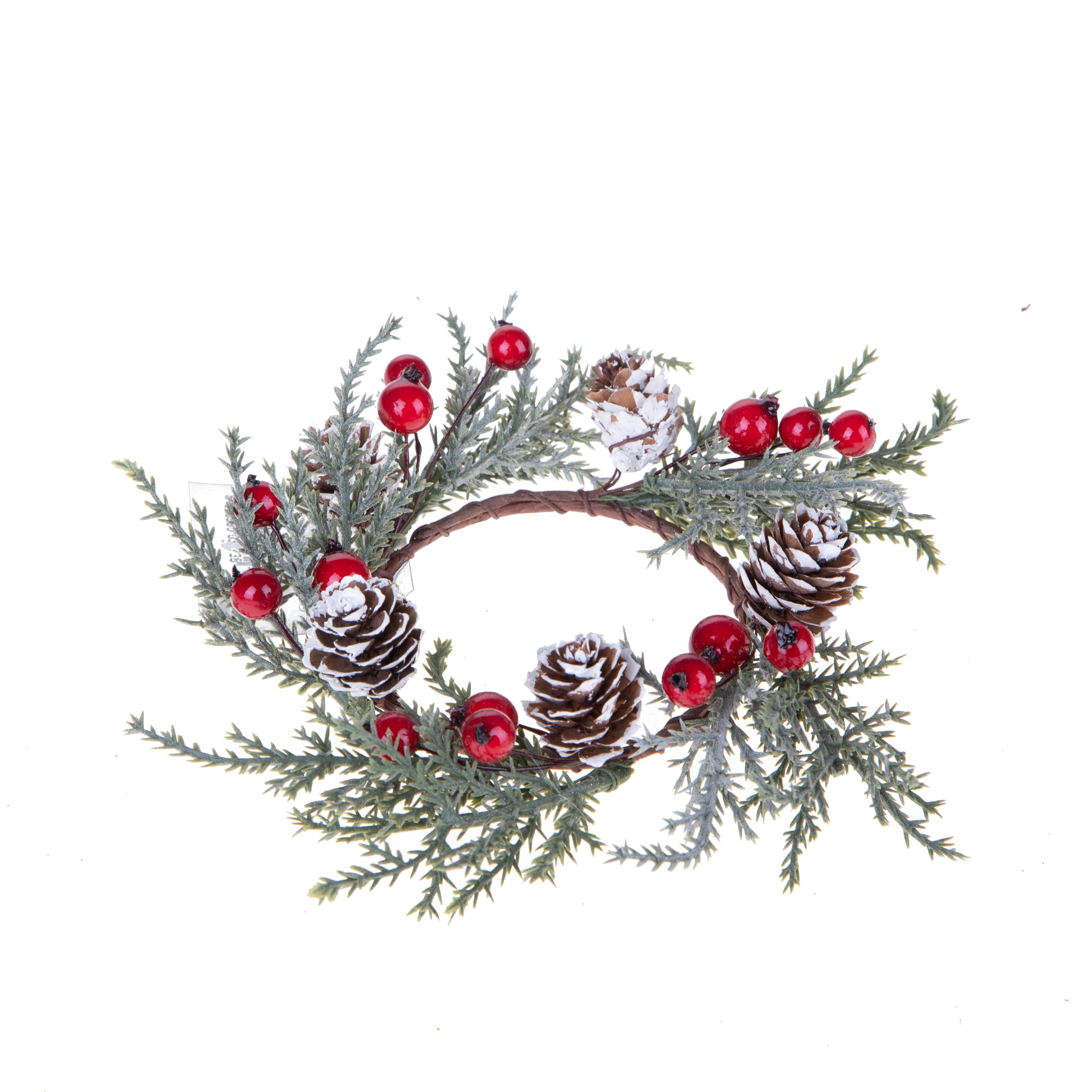Ghirlanda giro candela con Bacche ed aghi di Pino