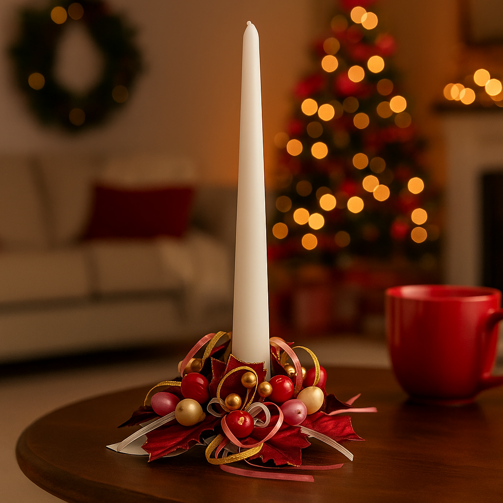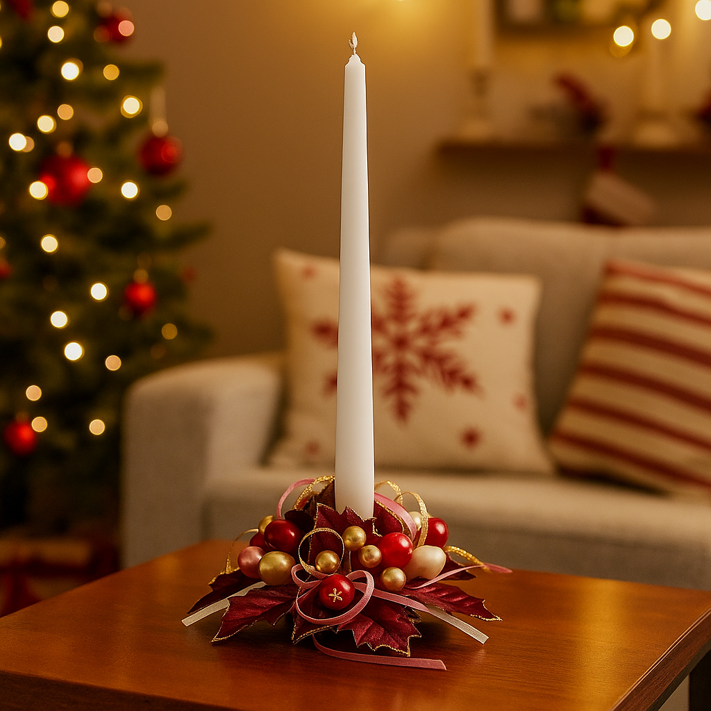 Porta nella tua casa l’autentico spirito del Natale con questa raffinata corona decorativa con vischio, agrifoglio e bacche rosse, perfetta per decorare la tavola o come fuoriporta. I dettagli realistici delle foglie, uniti al contrasto vivace delle bacche, creano una composizione armoniosa e festosa, capace di valorizzare ogni angolo della casa. Compatta e curata nei particolari, è ideale anche come centrotavola o base per candele, donando un tocco naturale e accogliente alla tua decorazione natalizia.