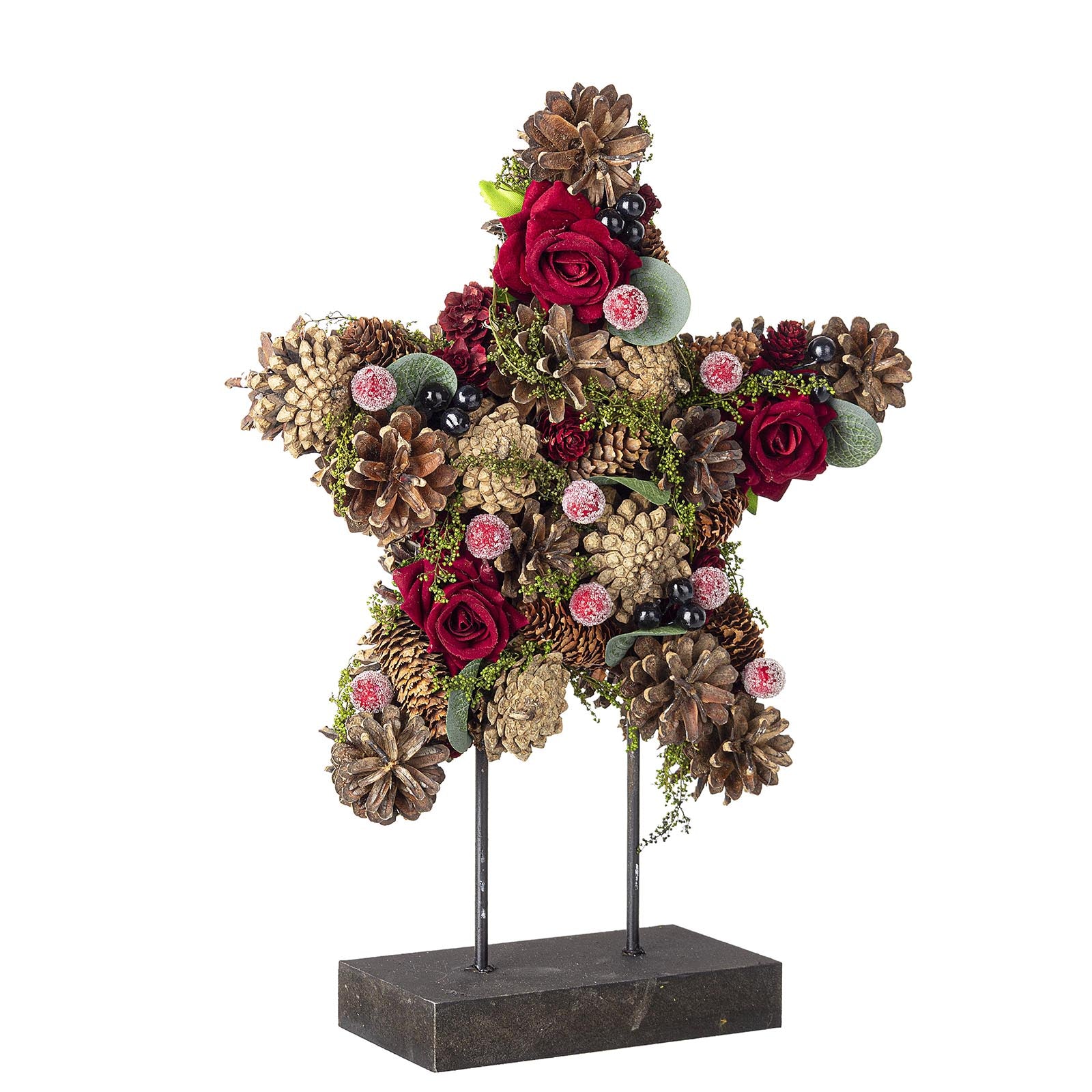 Decorazione natalizia a forma di stella con pigne e rose, da h 36 cm