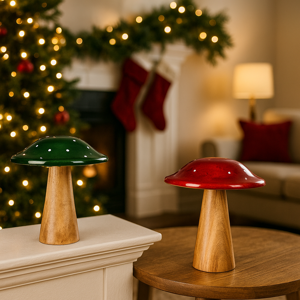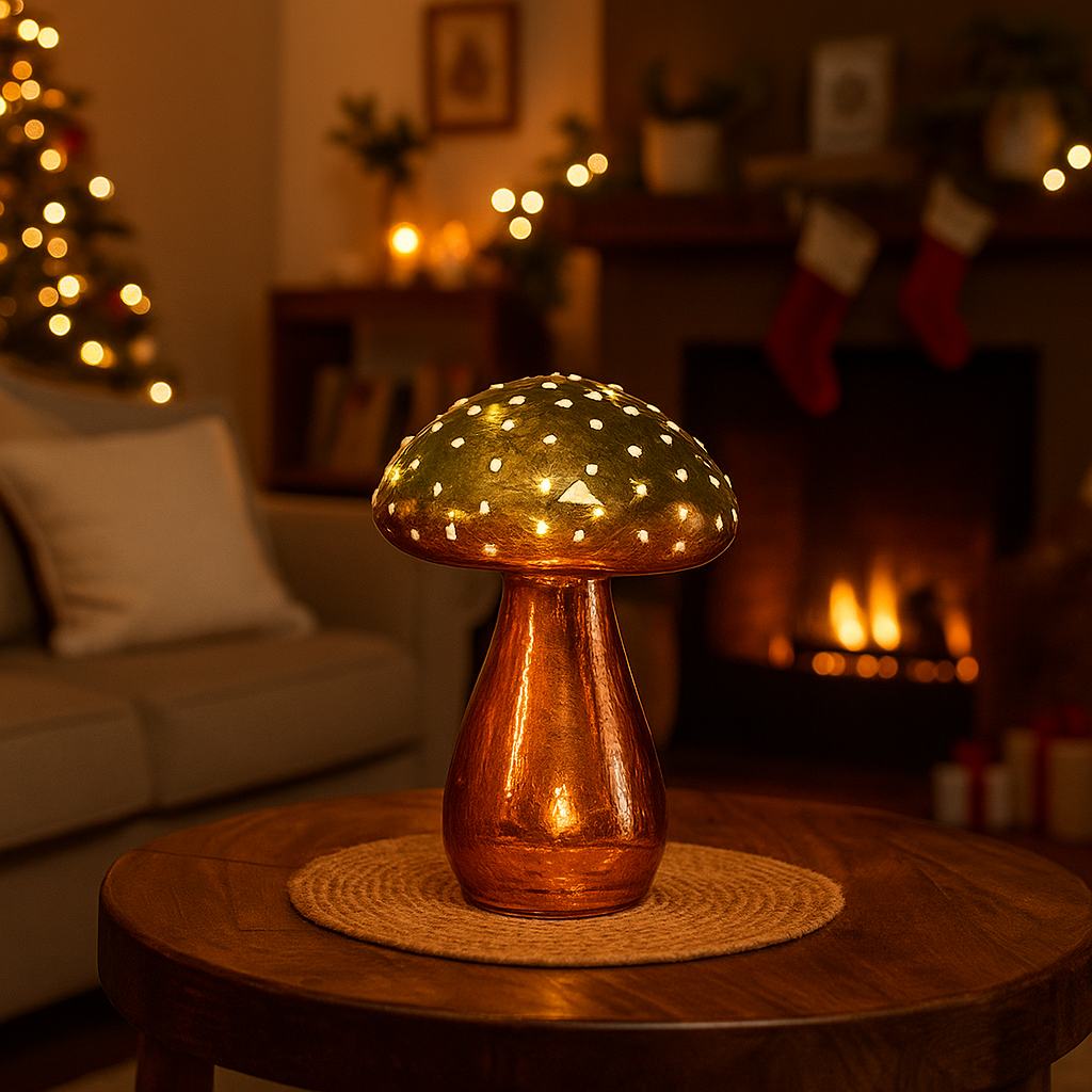Perfetto da solo o in gruppo, abbinato ad altri funghi, gnomi, pigne, rami di pino e micro‑LED