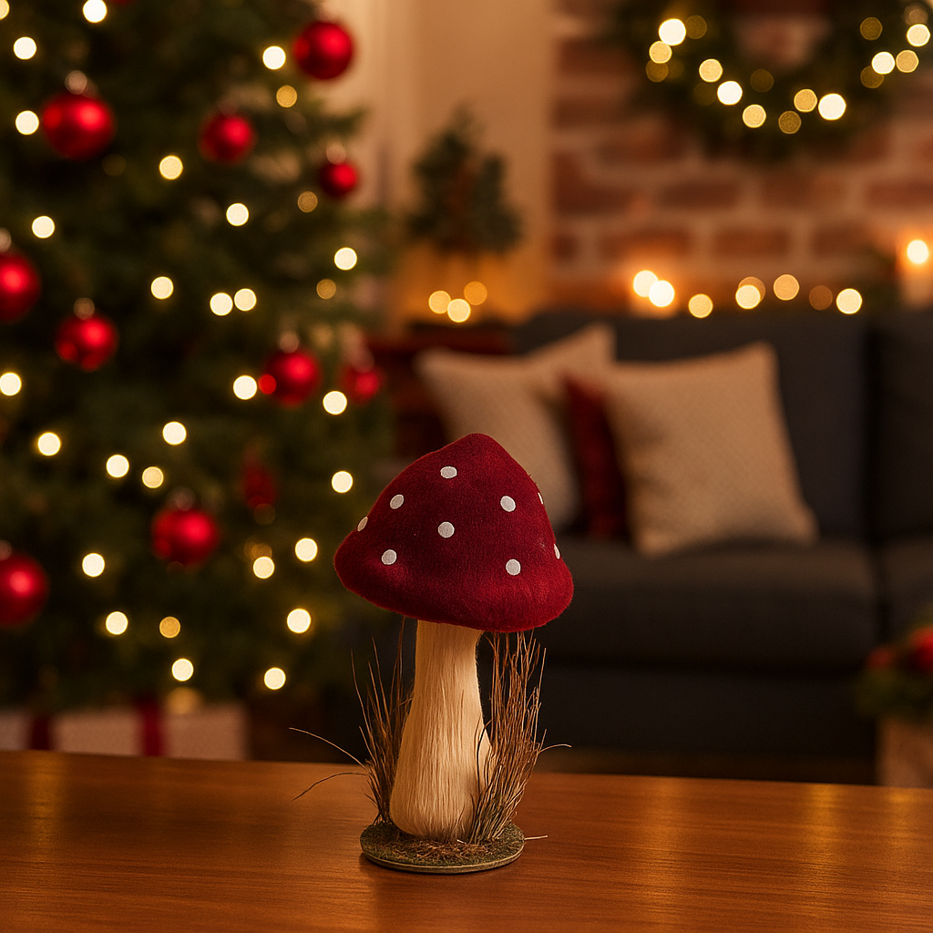 Iconico, fiabesco e immediatamente riconoscibile: questo fungo rosso con puntini bianchi porta un tocco giocoso e vintage nelle decorazioni di Natale. Alto 20 cm, è perfetto su mensole, centrotavola, villaggi in miniatura o accanto all’albero, dove aggiunge colore e carattere senza occupare troppo spazio.