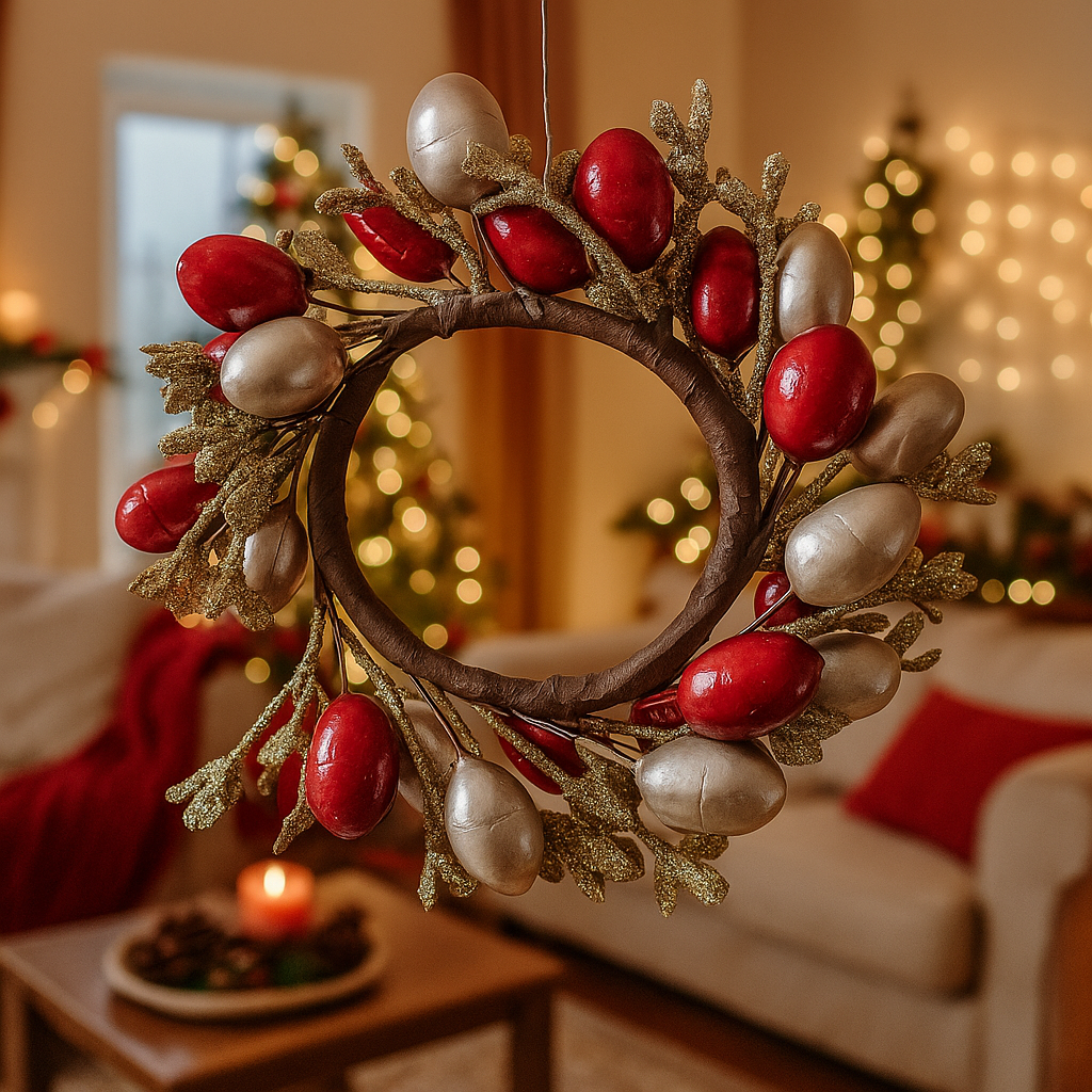 Compatta ma d’effetto, questa corona è ideale anche per chi ha spazi ridotti ma non vuole rinunciare alla magia delle decorazioni natalizie.